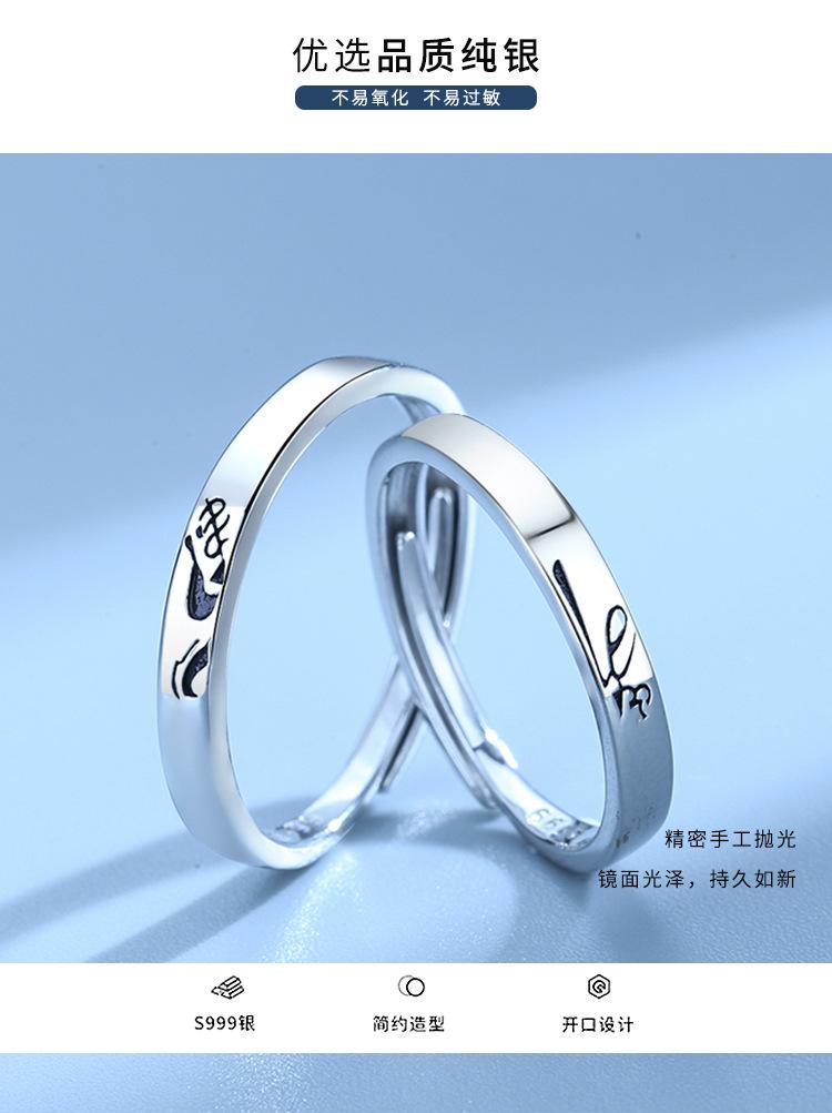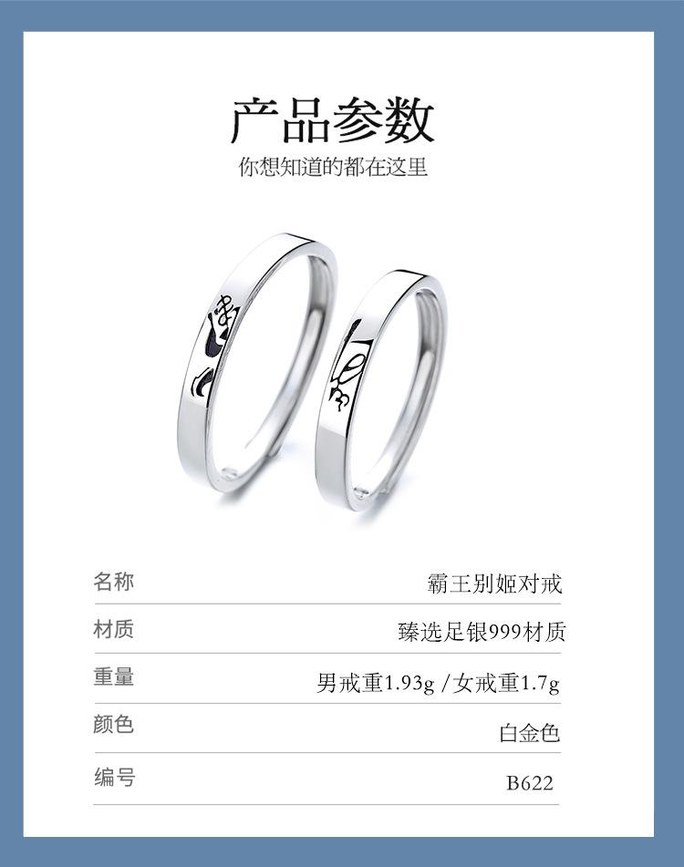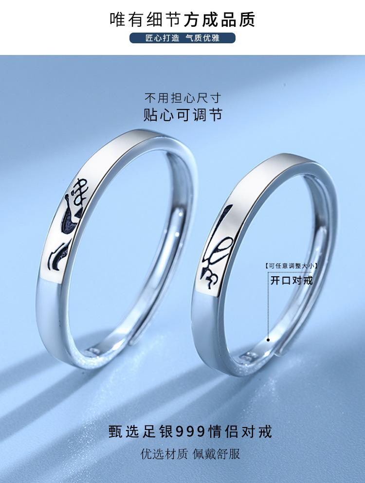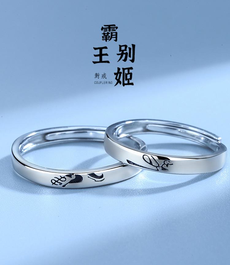Anillo de pareja de plata pura 999, anillo de pareja Adiós Concubina, personalidad nicho, plata esterlina, hombres y mujeres, anillo abierto, regalo para estudiante