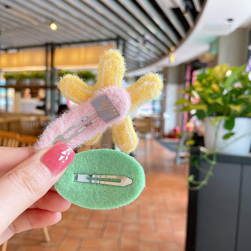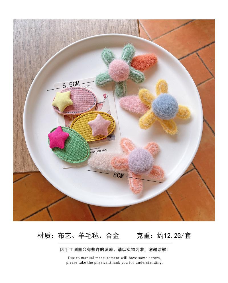 Horquilla infantil de felpa de flores coloridas estilo coreano Ovalada de color contrastante estrella de cinco puntas pinza BB clip para flequillo pinza lateral de tela Nuevo