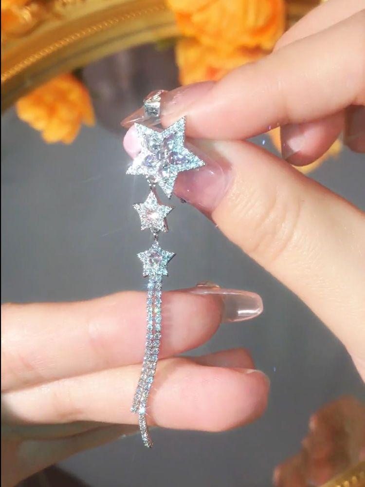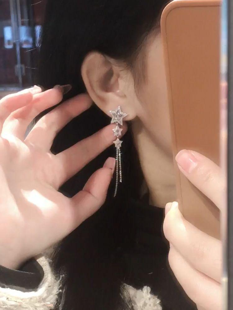 Aretes de Borla de Nueva Estrella Brillante Coreana Aretes Aretes Femeninos Diseño de Nicho Sentido Elegantes Aretes de Lujo Ligero 2023 Nuevo
