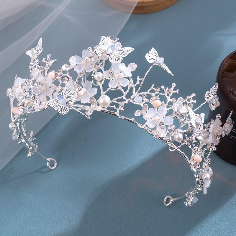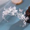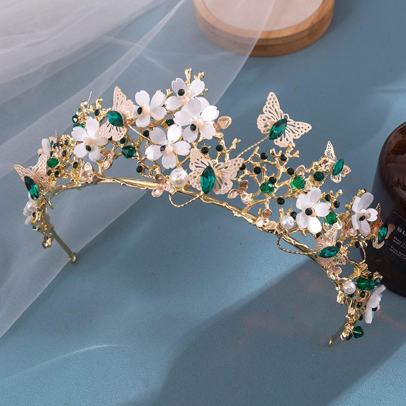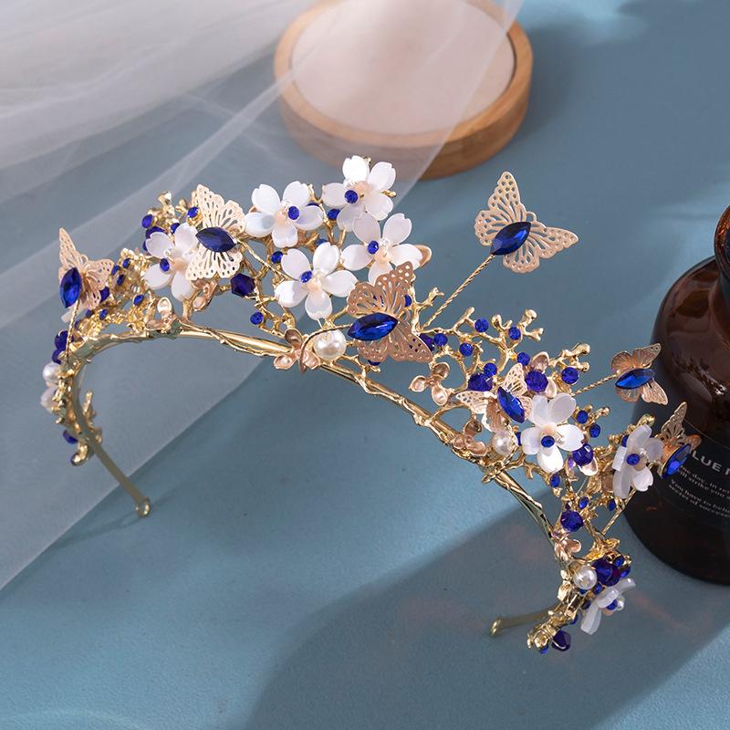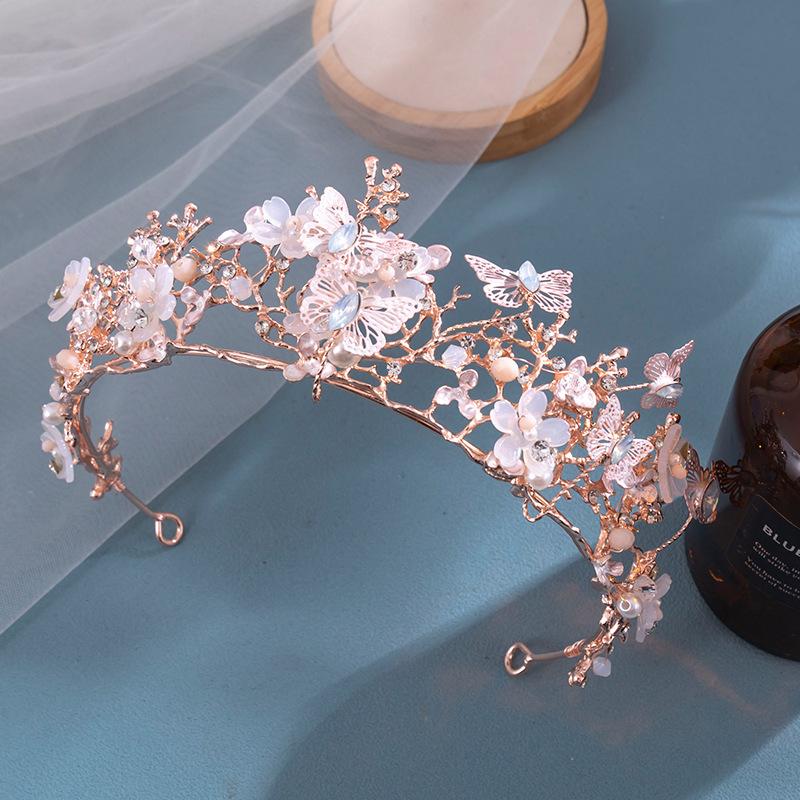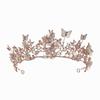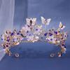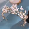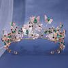 Corona de novia de estilo europeo y americano con diseño de mariposa, flores y diamantes de imitación, tocado, corona barroca dorada, accesorios para la cabeza