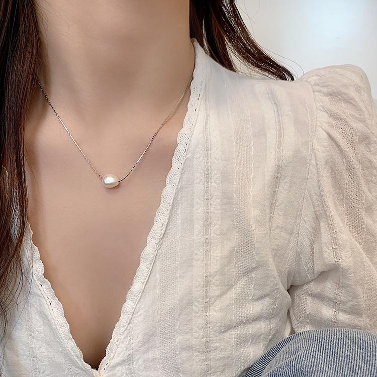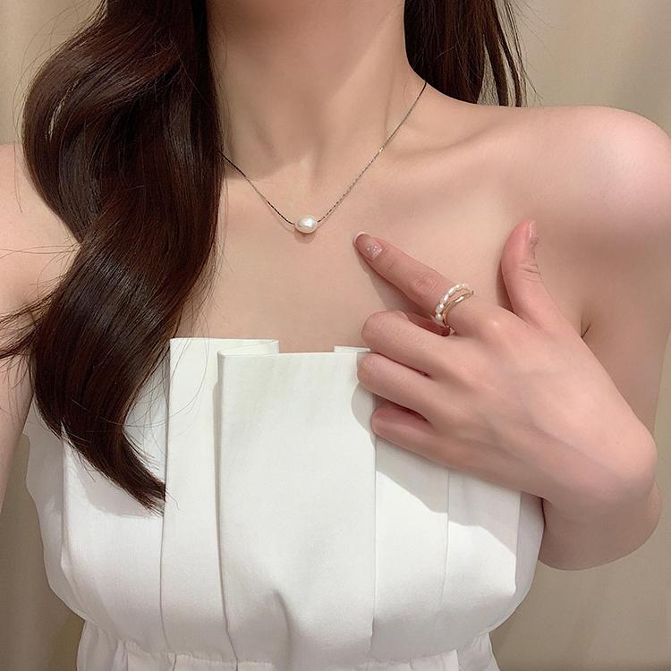 Collar de perlas naturales de lujo ligero y elegante para mujer, cadena de clavícula de alta gama, de moda de verano