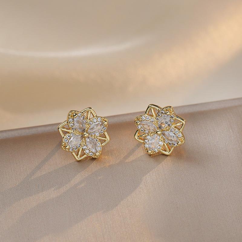 Brincos femininos 925 prata agulha diário viajante estilo frio quatro folhas flor zircão brincos nicho design senso ins estilo brincos