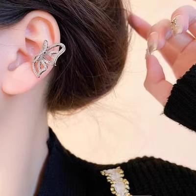 Pendientes colgantes de oreja de elfo de mariposa con clip de hueso de oreja sin orejas para mujer, diseño de nicho con sentido de viento frío de alta calidad