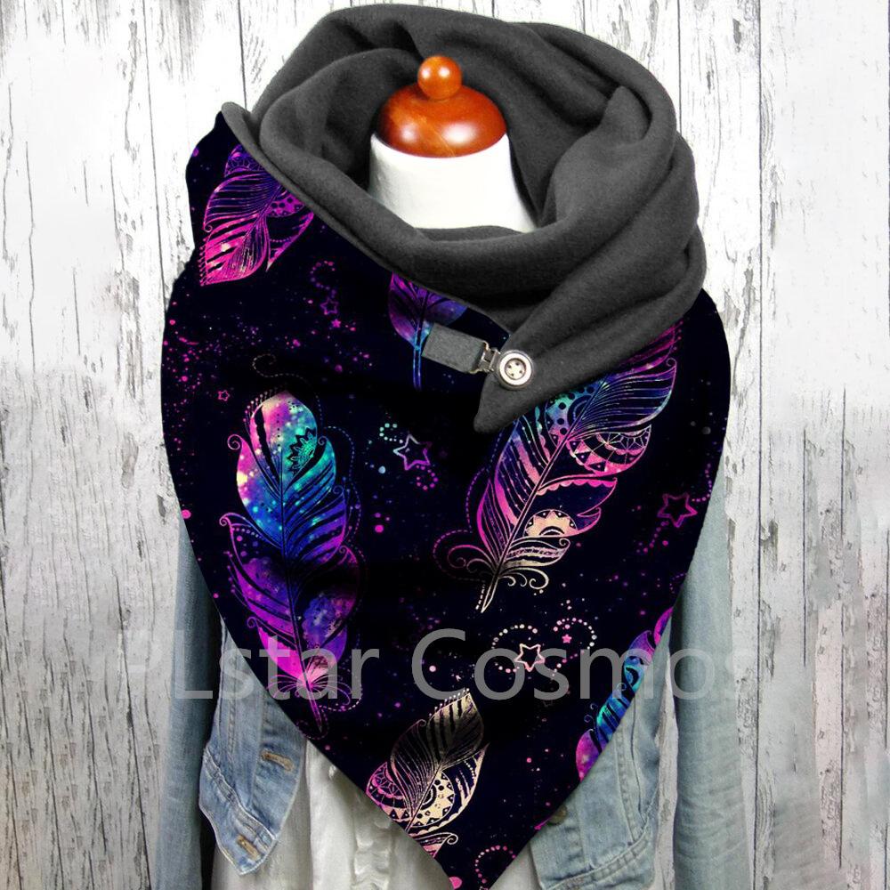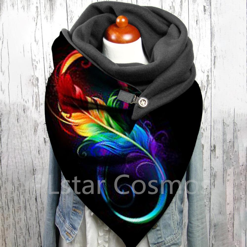 Nueva bufanda con hebilla triangular doble con estampado 3D de plumas y costuras cálidas a prueba de frío para otoño e invierno (impresión de posicionamiento)