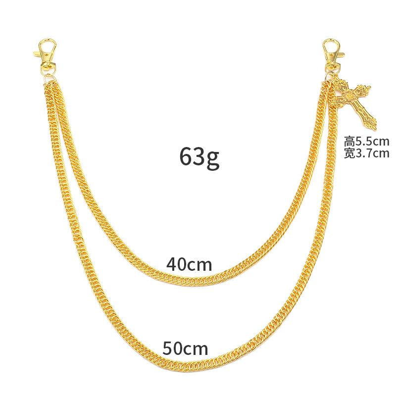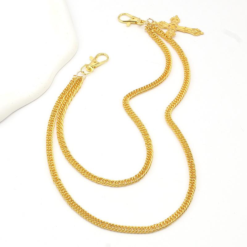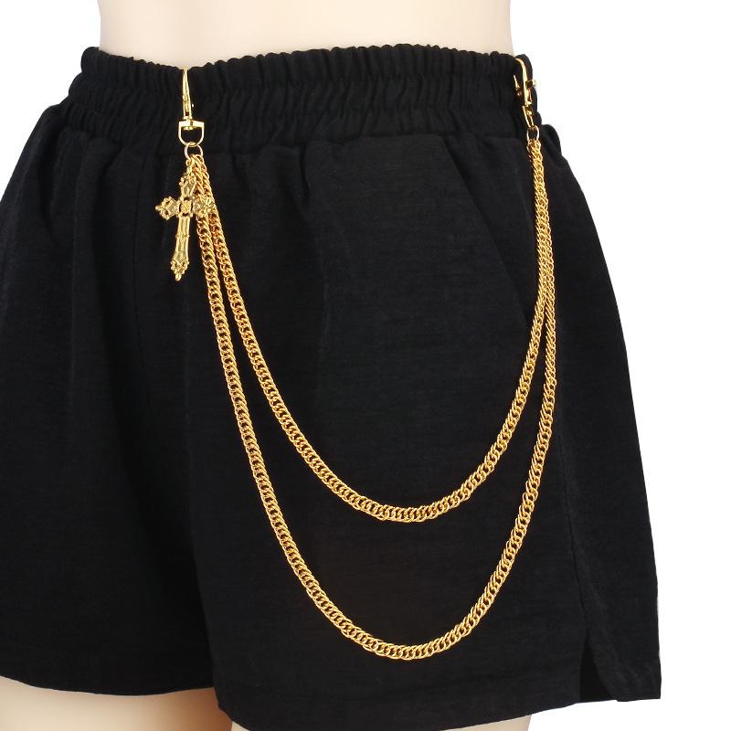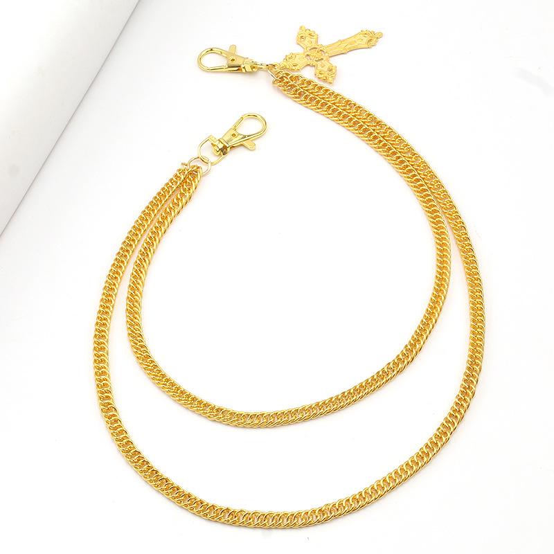 Joyería transfronteriza europea y americana moda personalizada cadena cruzada para pantalones hip hop punk moderna color oro de imitación que conserva el color accesorios para pantalones
