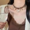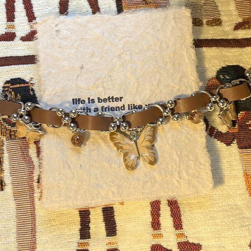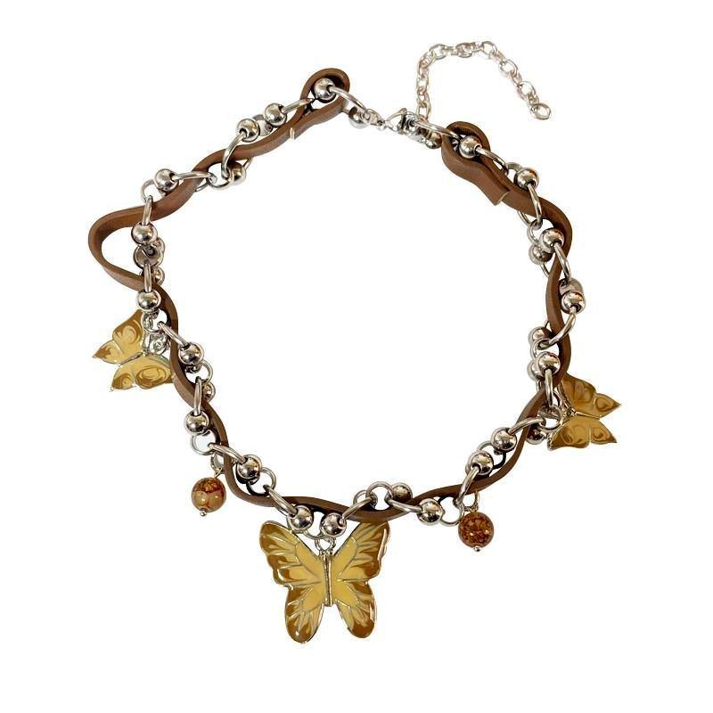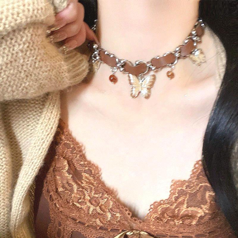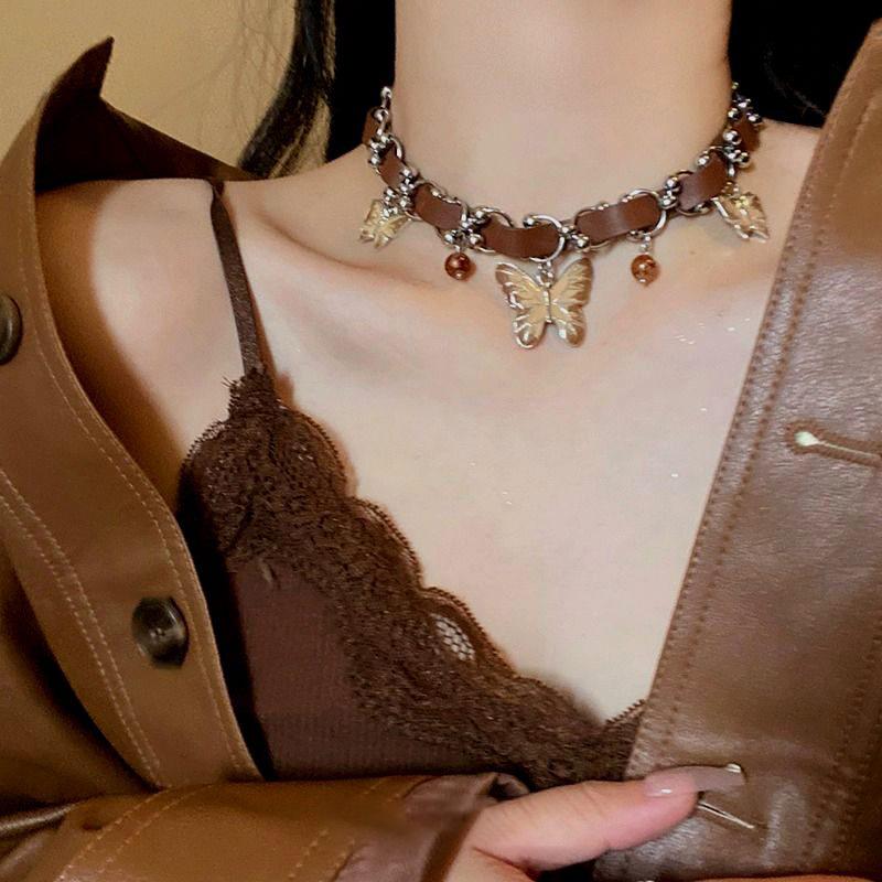 Collar de mariposa de alta gama para mujer, estilo industrial pesado, estilo retro marrón, de cuero, ligero y lujoso, novedad de 2024