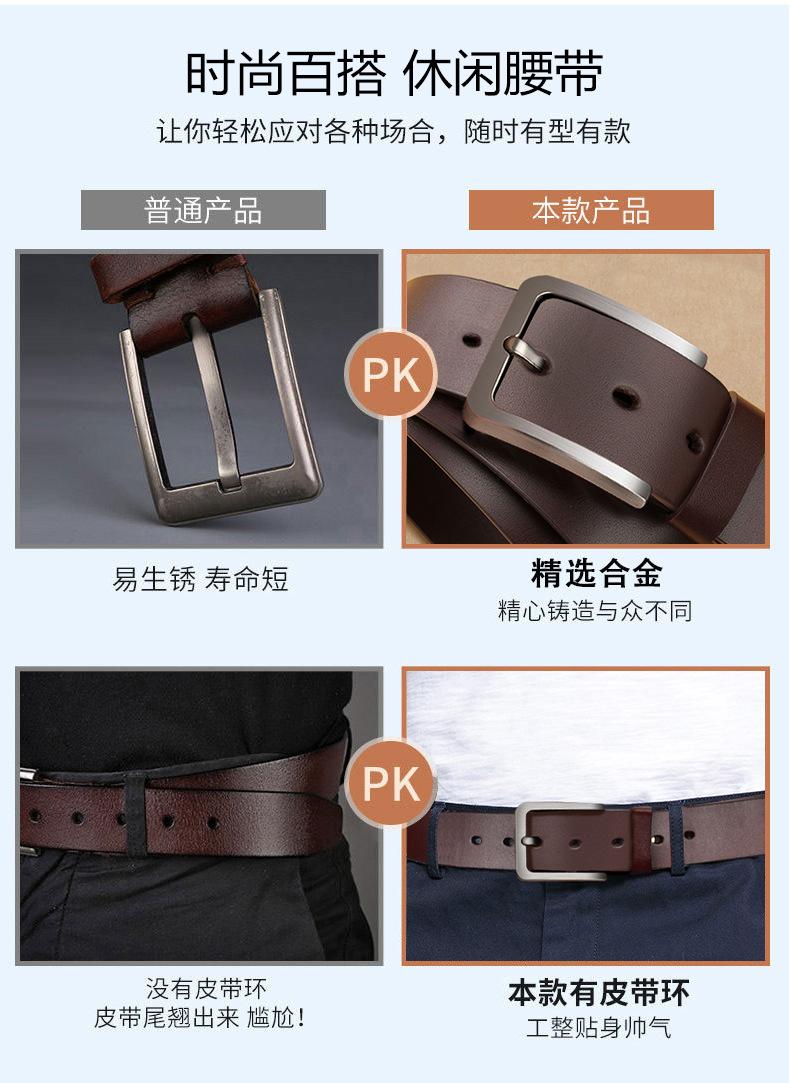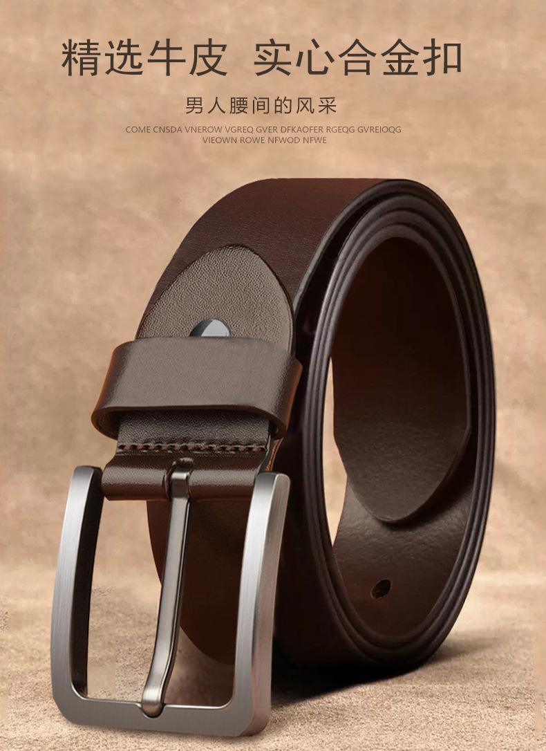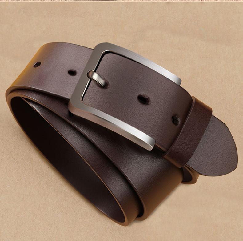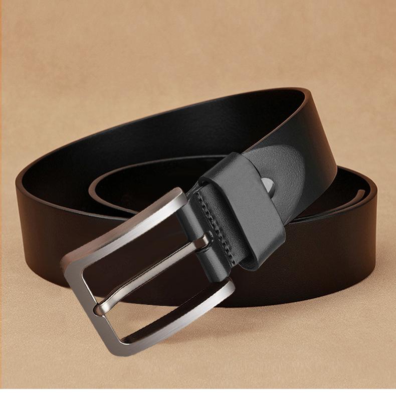 Cinturón de cuero genuino para hombre, informal, sencillo, con hebilla de pasador, de piel de vaca, moderno, para pantalones de negocios, combina con todo.