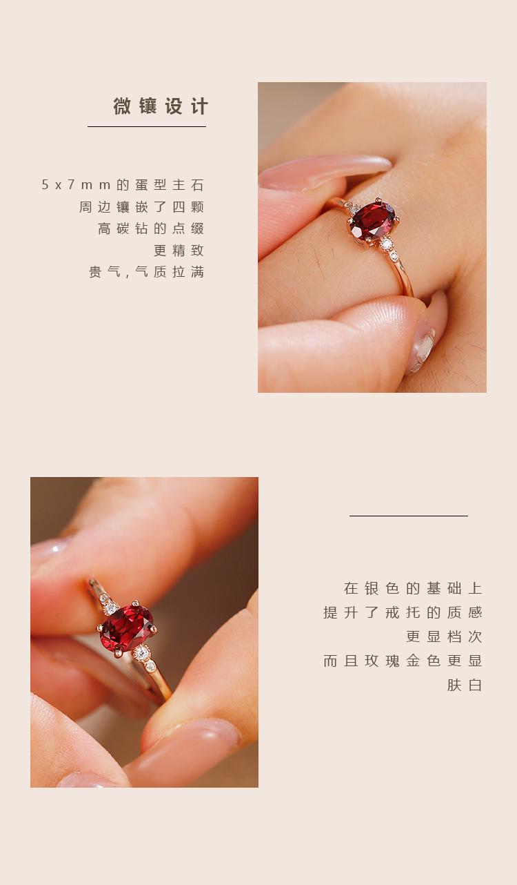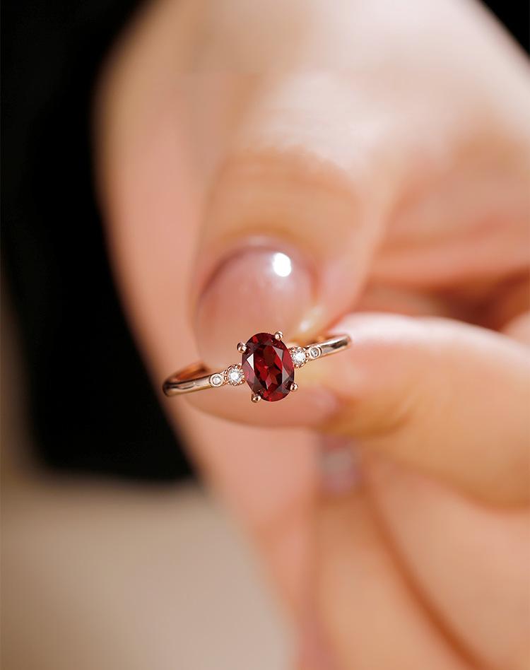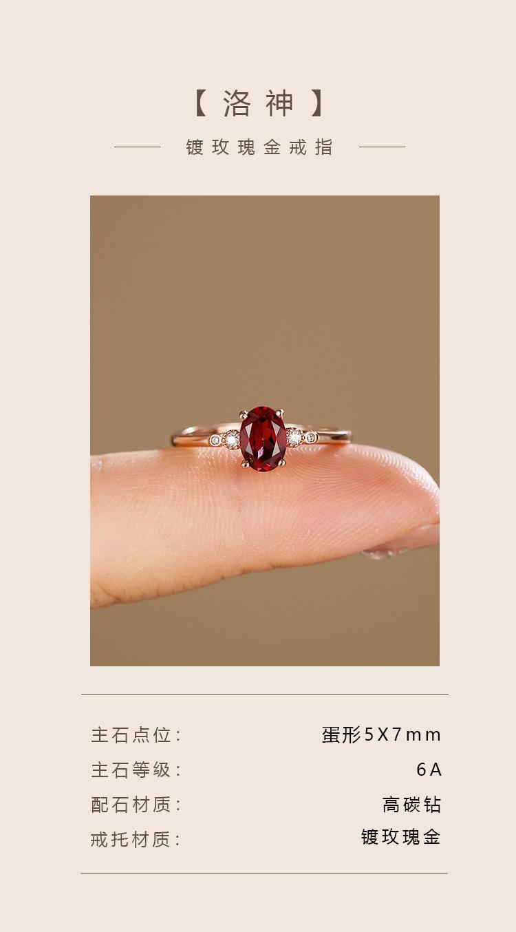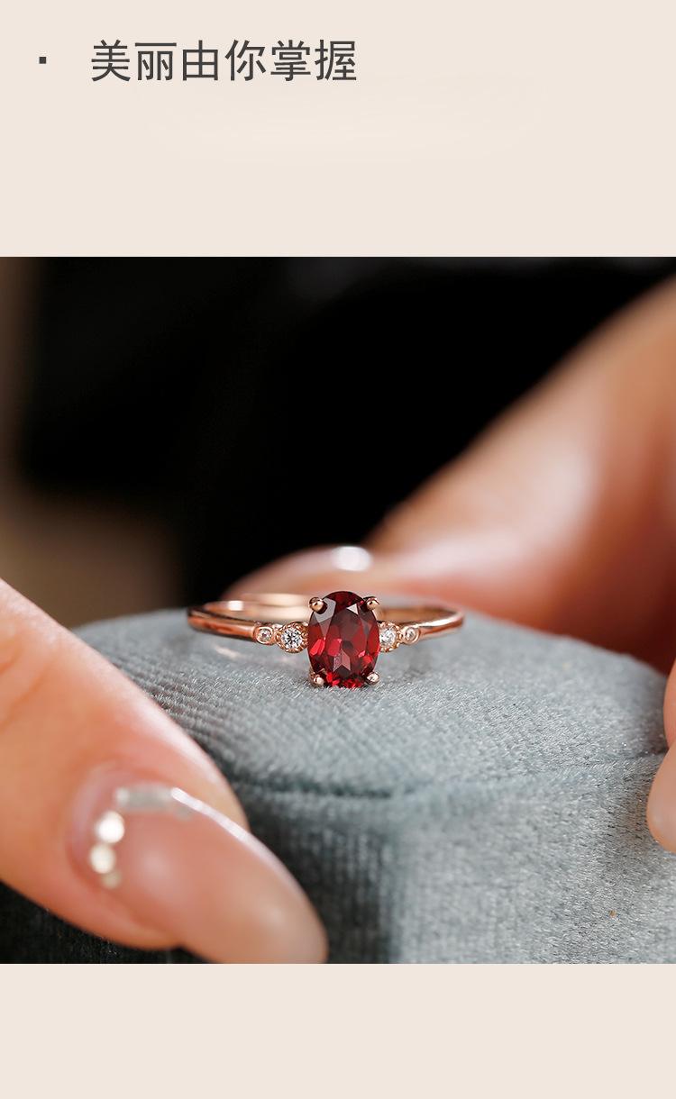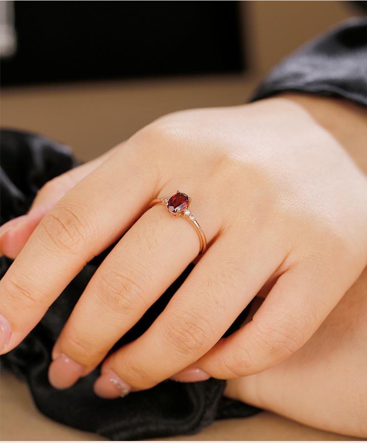 Anillo nuevo de granate natural de imitación, diseño nicho, chapado en oro rosa, incrustado con tesoro de sangre de paloma rojo imitación de 5 * 7 mm, anillo femenino