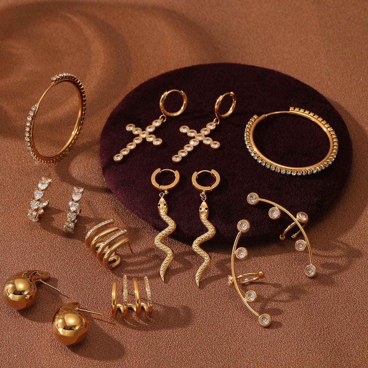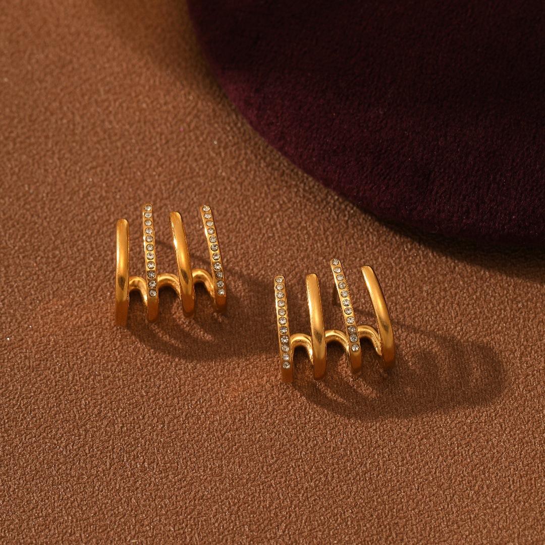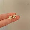 Pendientes de acero inoxidable con cuatro garras y diamantes estilo francés retro para mujer, diseño de nicho simple, pendientes irregulares de acero de titanio