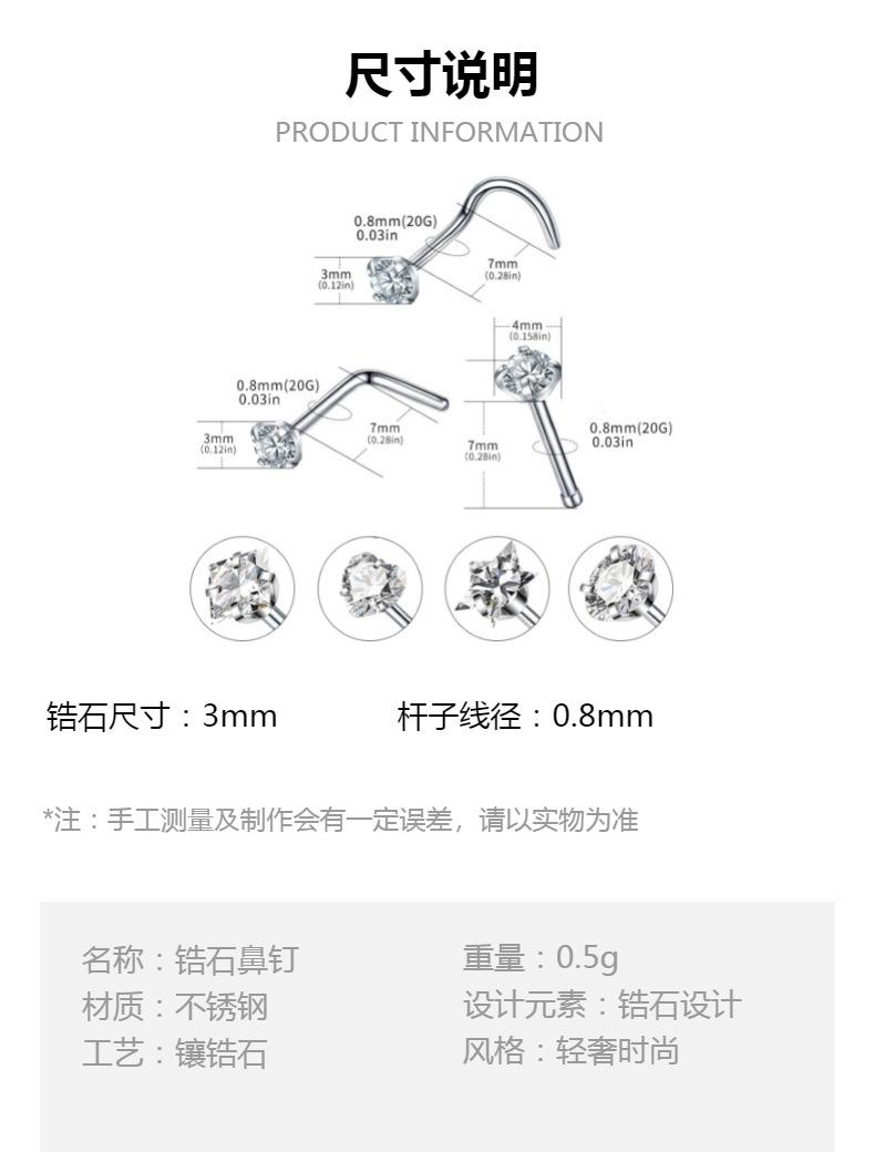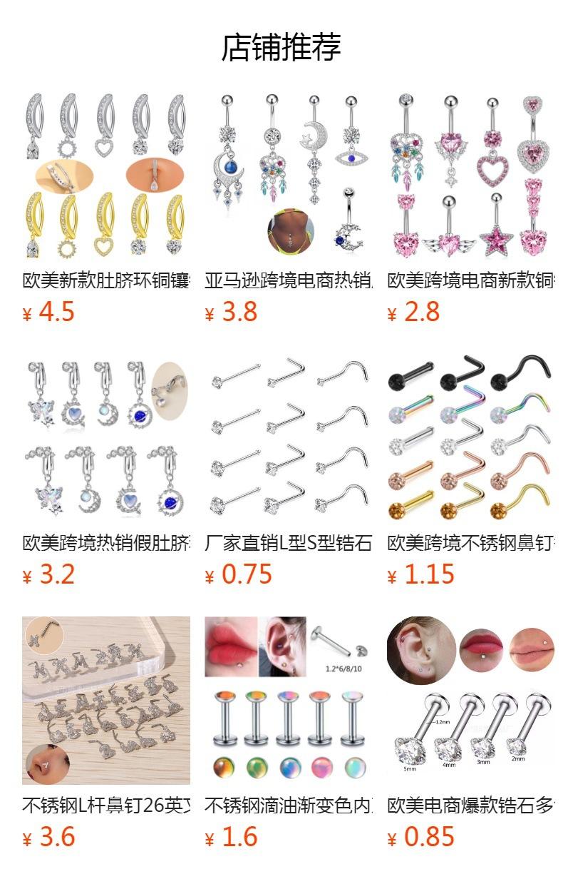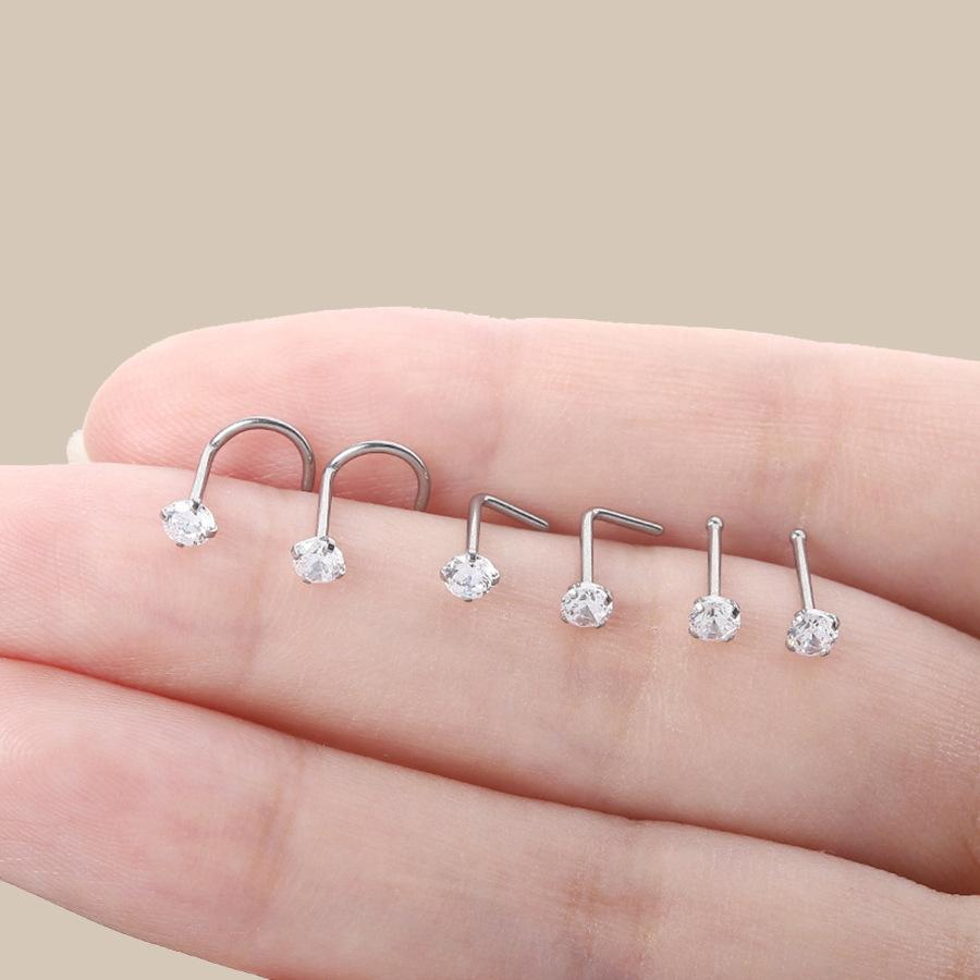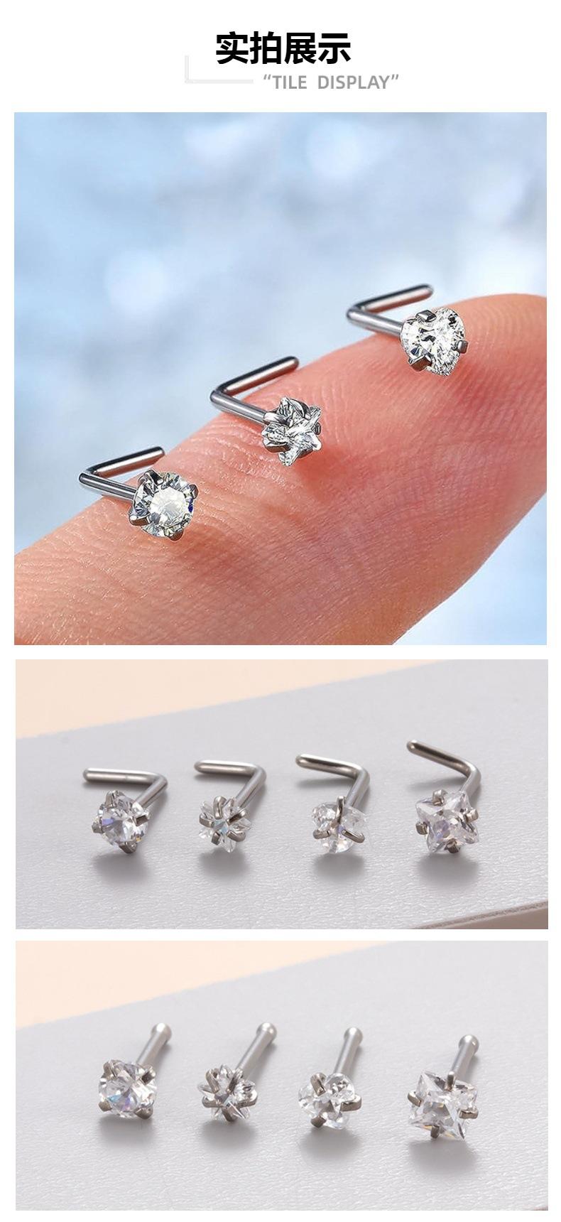 Venta al por mayor de clavos nasales de circonita con forma de corazón, redondos, de estrella de cinco puntas y cuadrados, de gran venta en Europa y Estados Unidos.