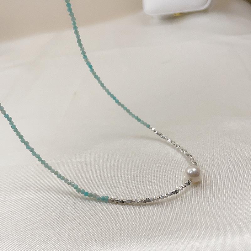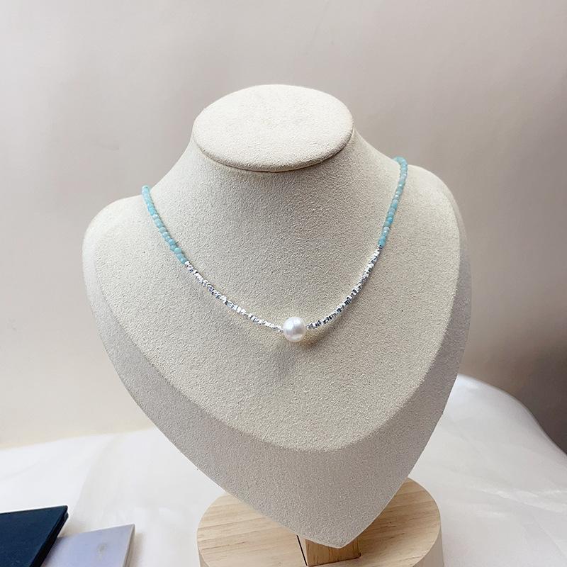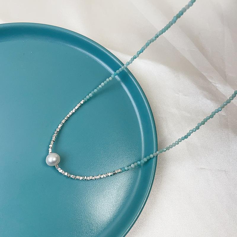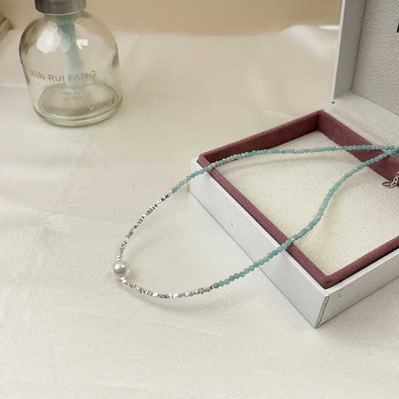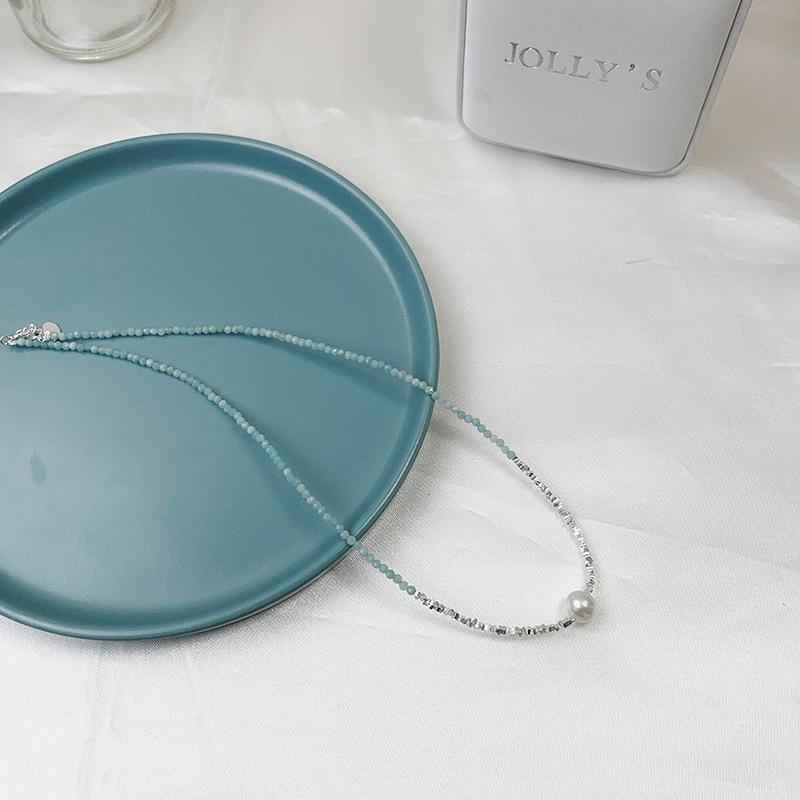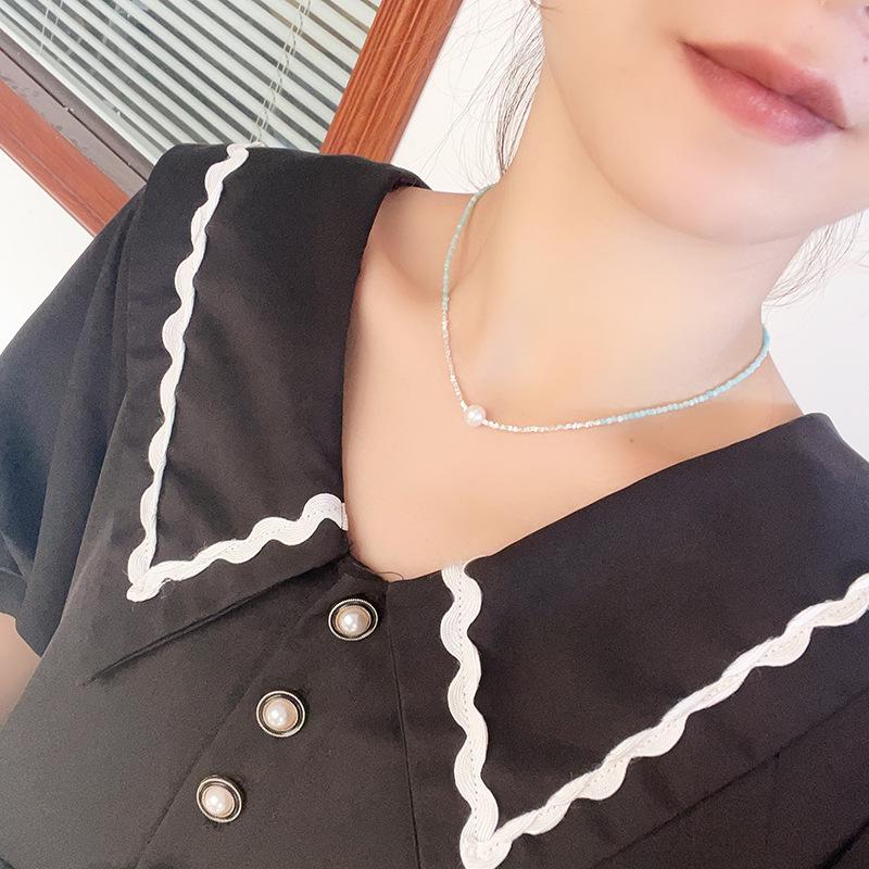Collar de perlas naturales de agua dulce con piedra de color azul en plata esterlina S925, con costuras de plata rota para mujer, cadena de clavícula ligera de lujo 2023.
