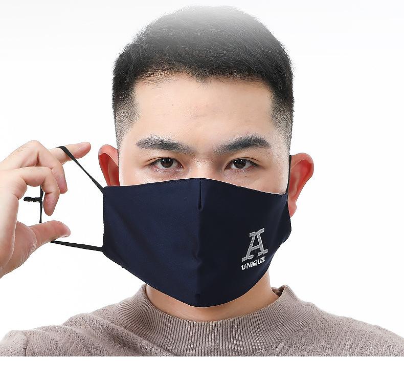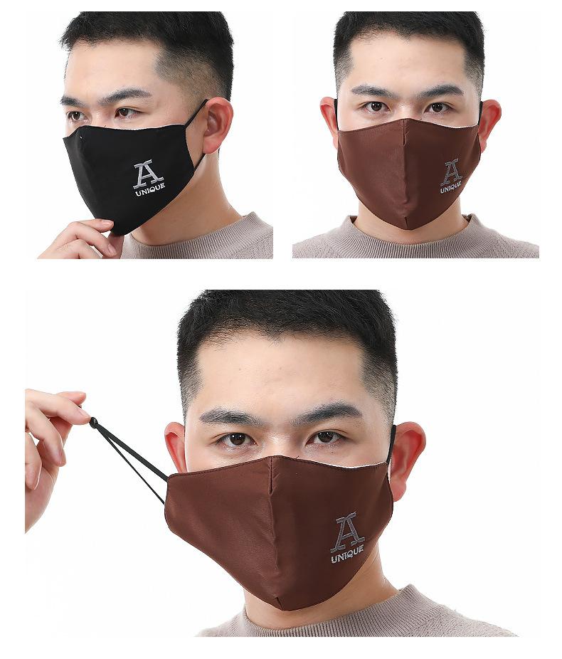 Mascarilla de franela bordada con letras para hombre para invierno, a prueba de polvo, cálida, para hombre, gruesa de doble capa, moderna, para otoño e invierno, hombre