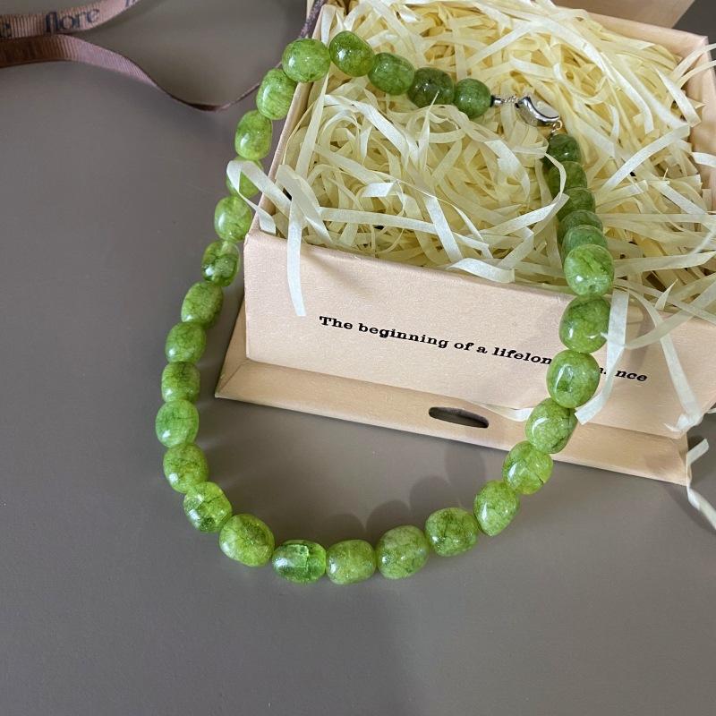 Verano 2024 nuevo collar de cuentas color aguacate blanco para mujer nicho lujo ligero sensación de alta gama cadena para el cuello cadena para clavícula
