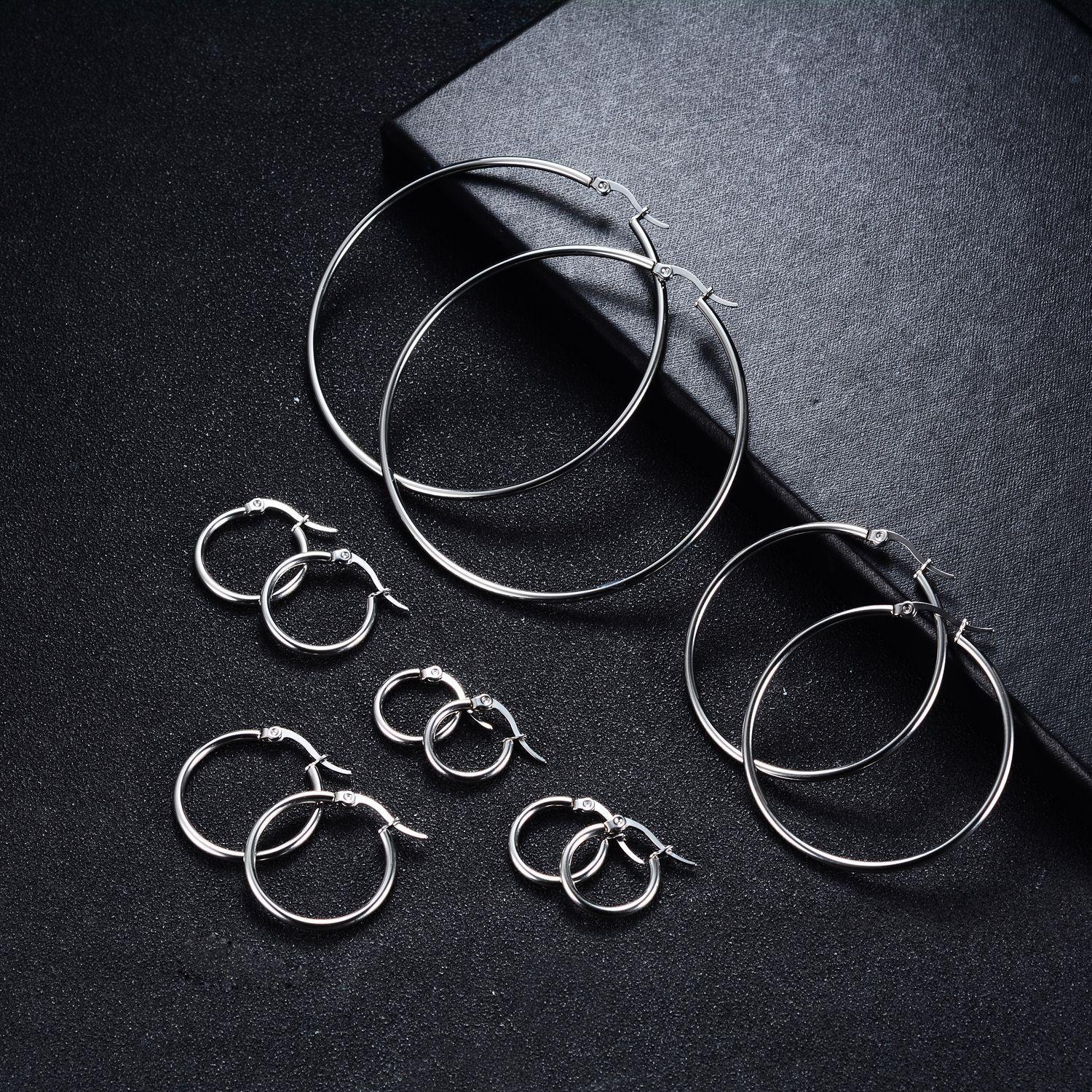Venta caliente transfronteriza, juego de hebillas para orejas de acero inoxidable, aros de alambre redondo, joyería de moda, pendientes de acero de titanio, fabricantes de joyas para orejas en stock.