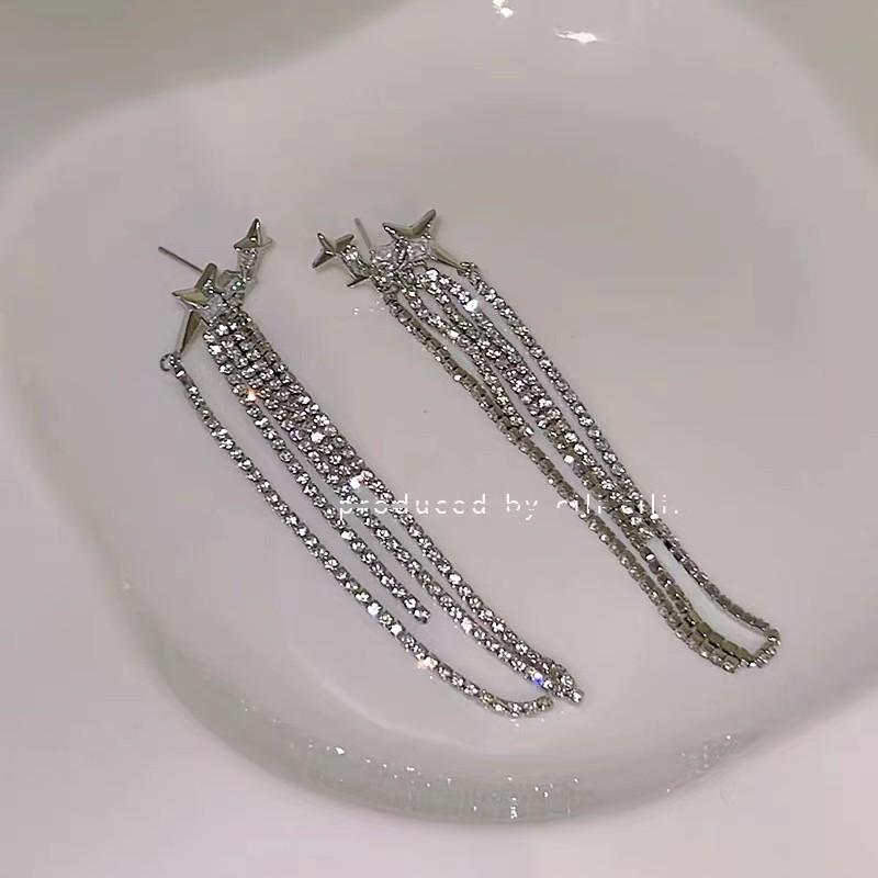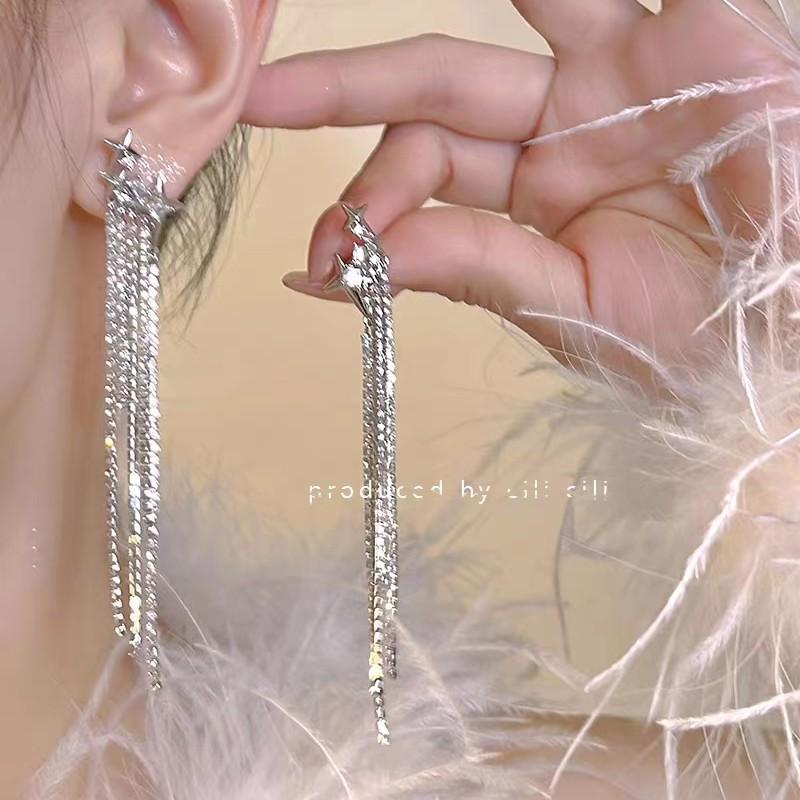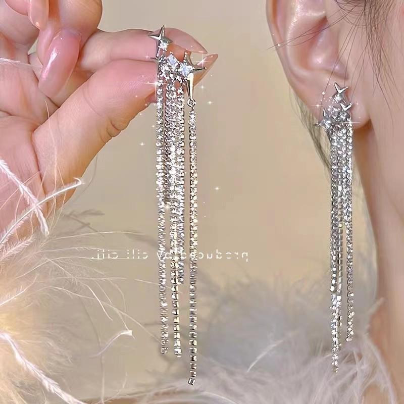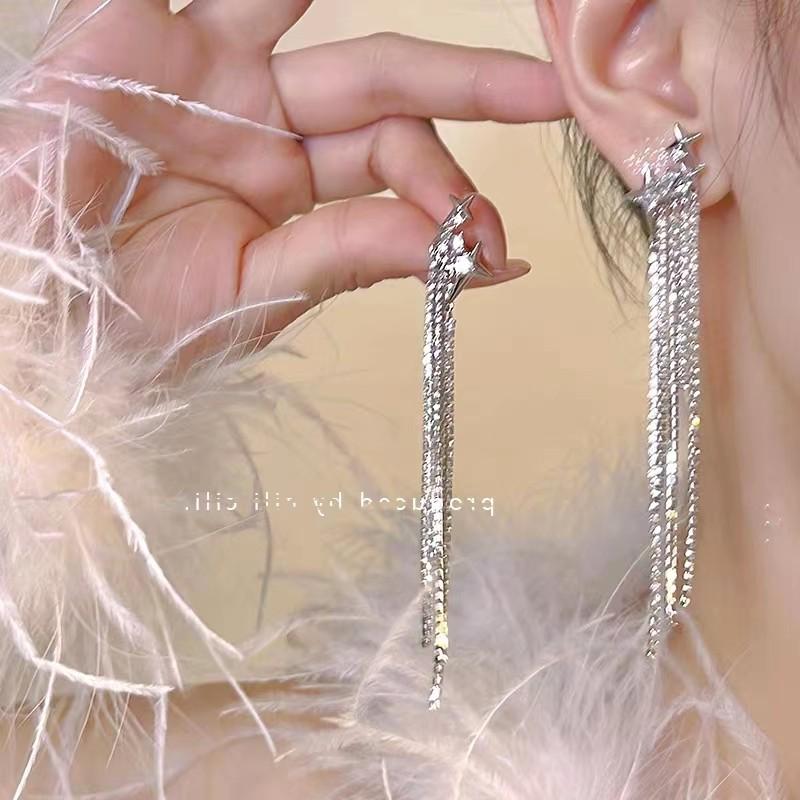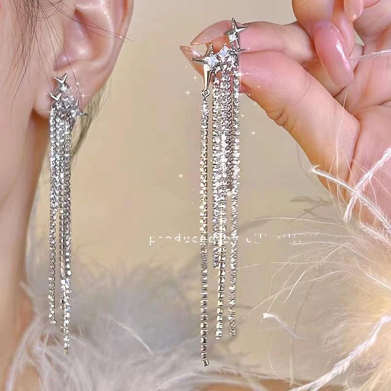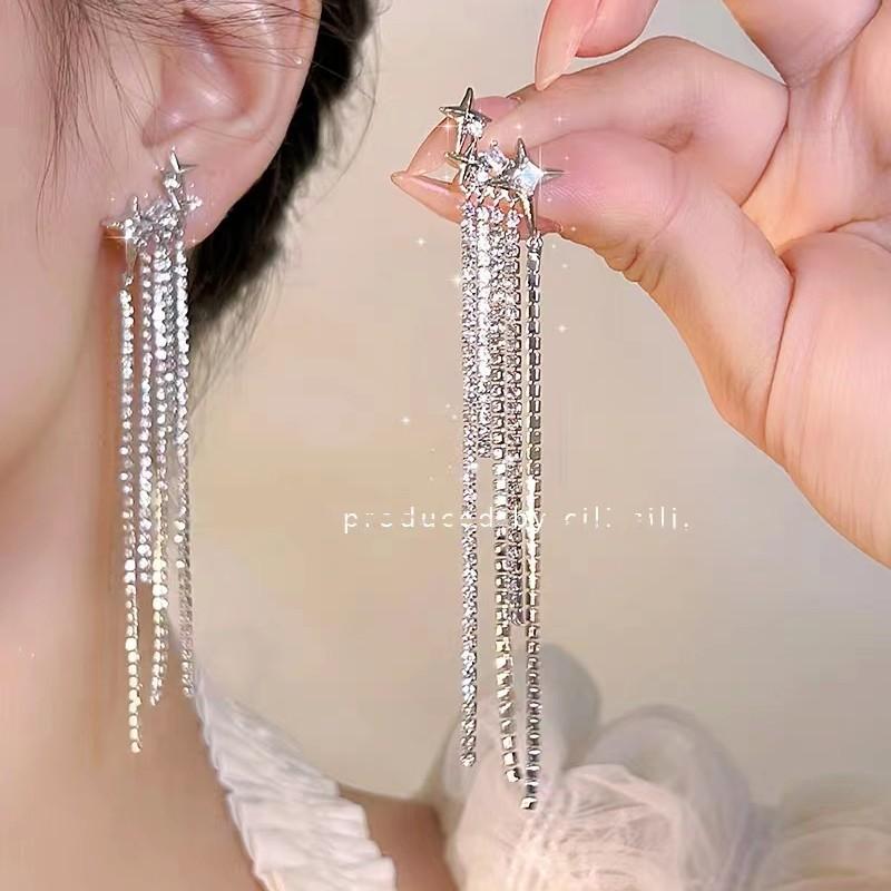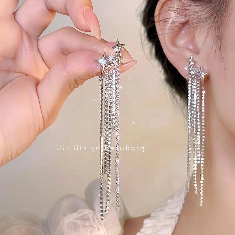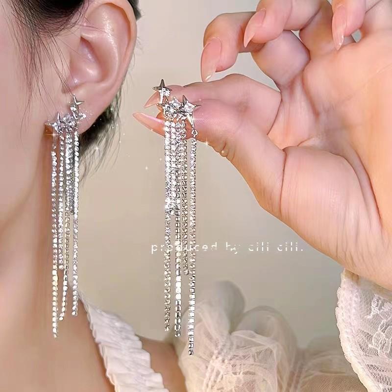 Compra Pendientes de lujo ligeros con borlas de diamantes y estrellas, estilo francés, elegantes y de alta gama. al por mayor en Joom.pro