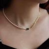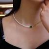 | Collar retro de perlas naturales de agua dulce con diseño de nicho, estilo Zhong Chuxi, gargantilla con pequeño collar de frijol dorado para mujer |