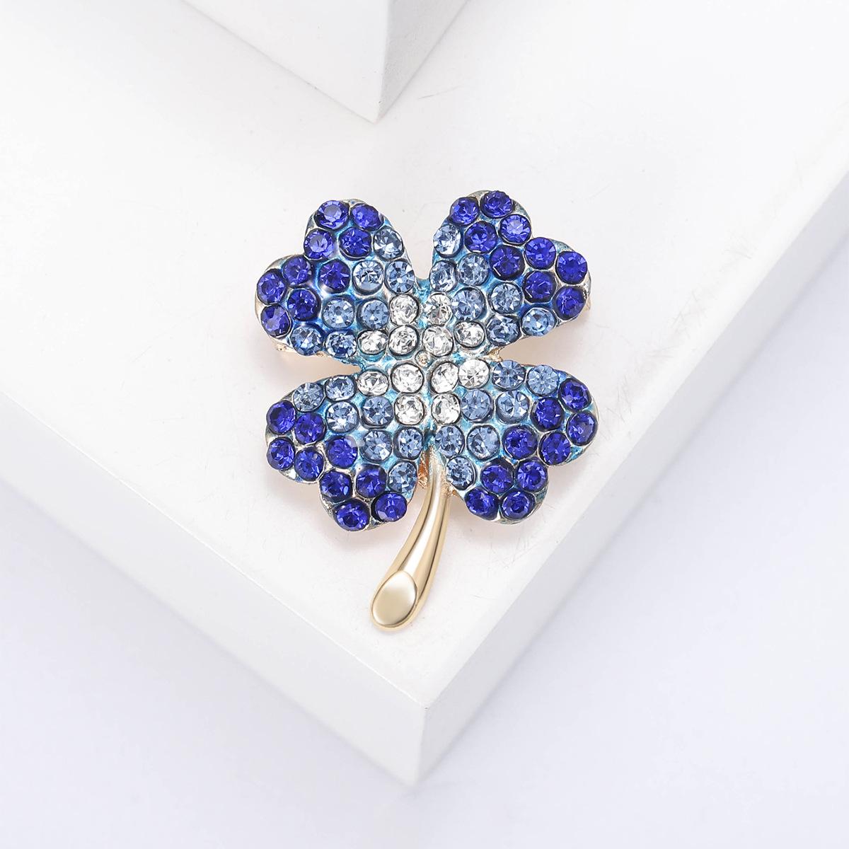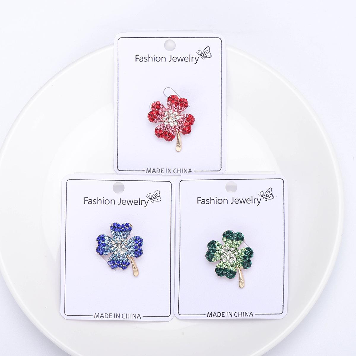 Broche de trébol de diamantes de imitación exquisito de alta gama de estilo coreano, moda, pequeño temperamento fresco, ropa, ramillete, joyería, alfiler, venta al por mayor
