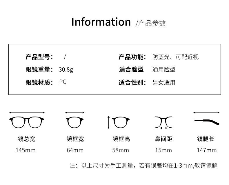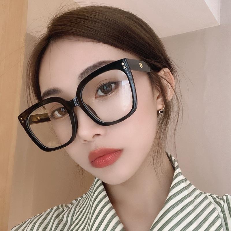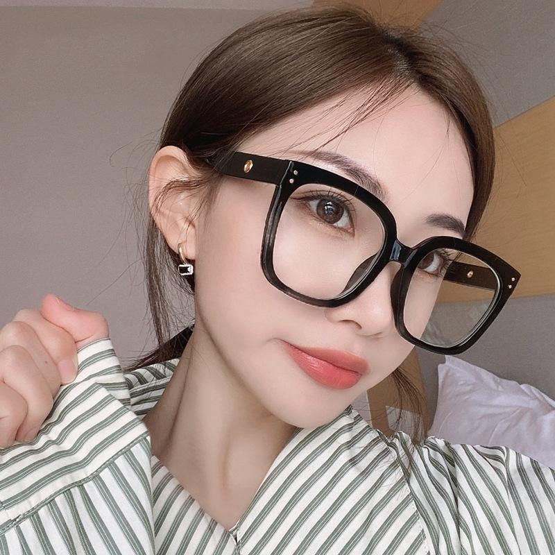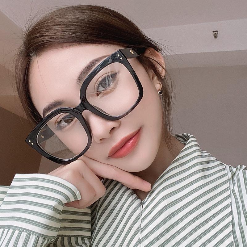 Gafas anti-luz azul de la misma moda de Jen, nuevas gafas de estilo coreano con montura negra lisa, montura gruesa, gafas planas para miopía.