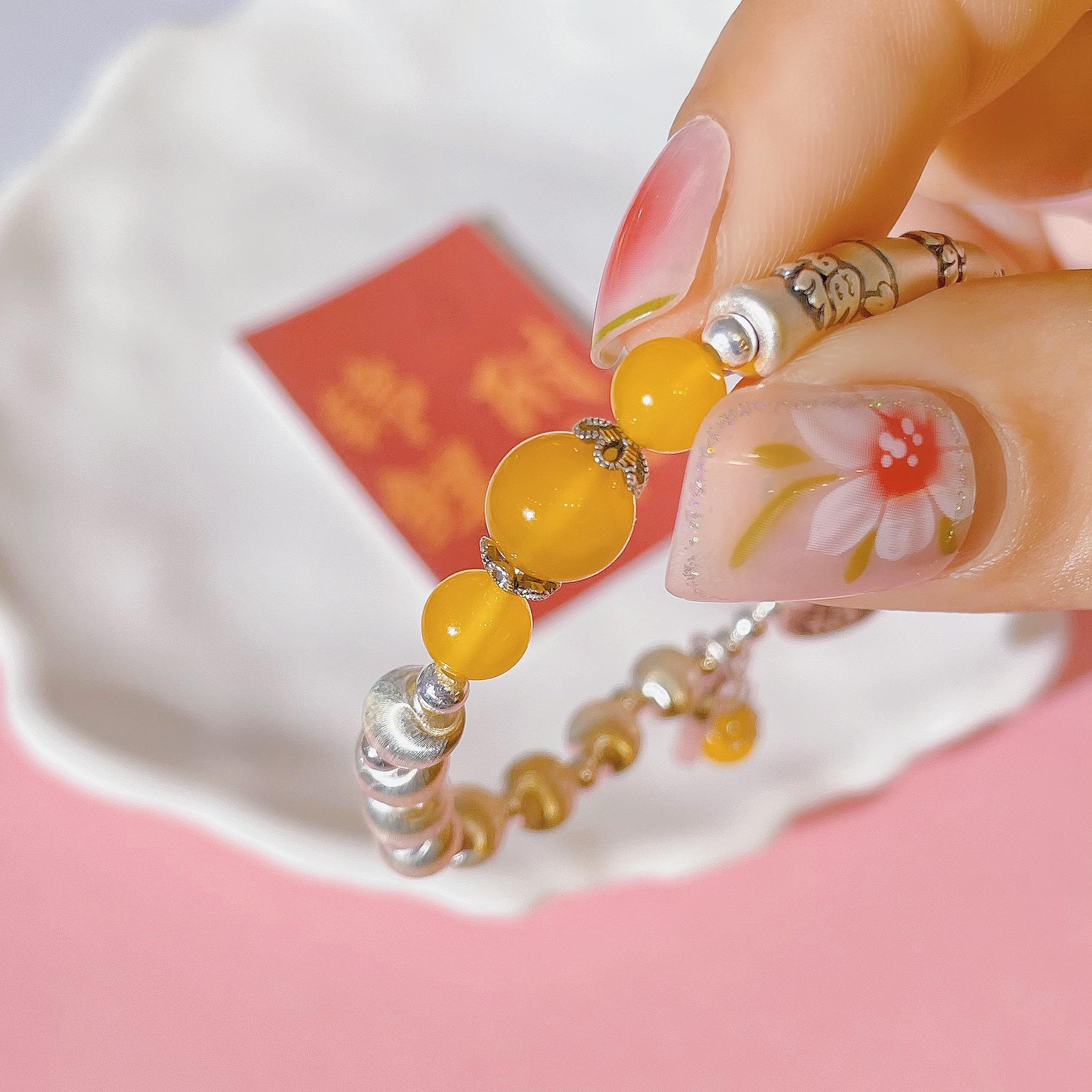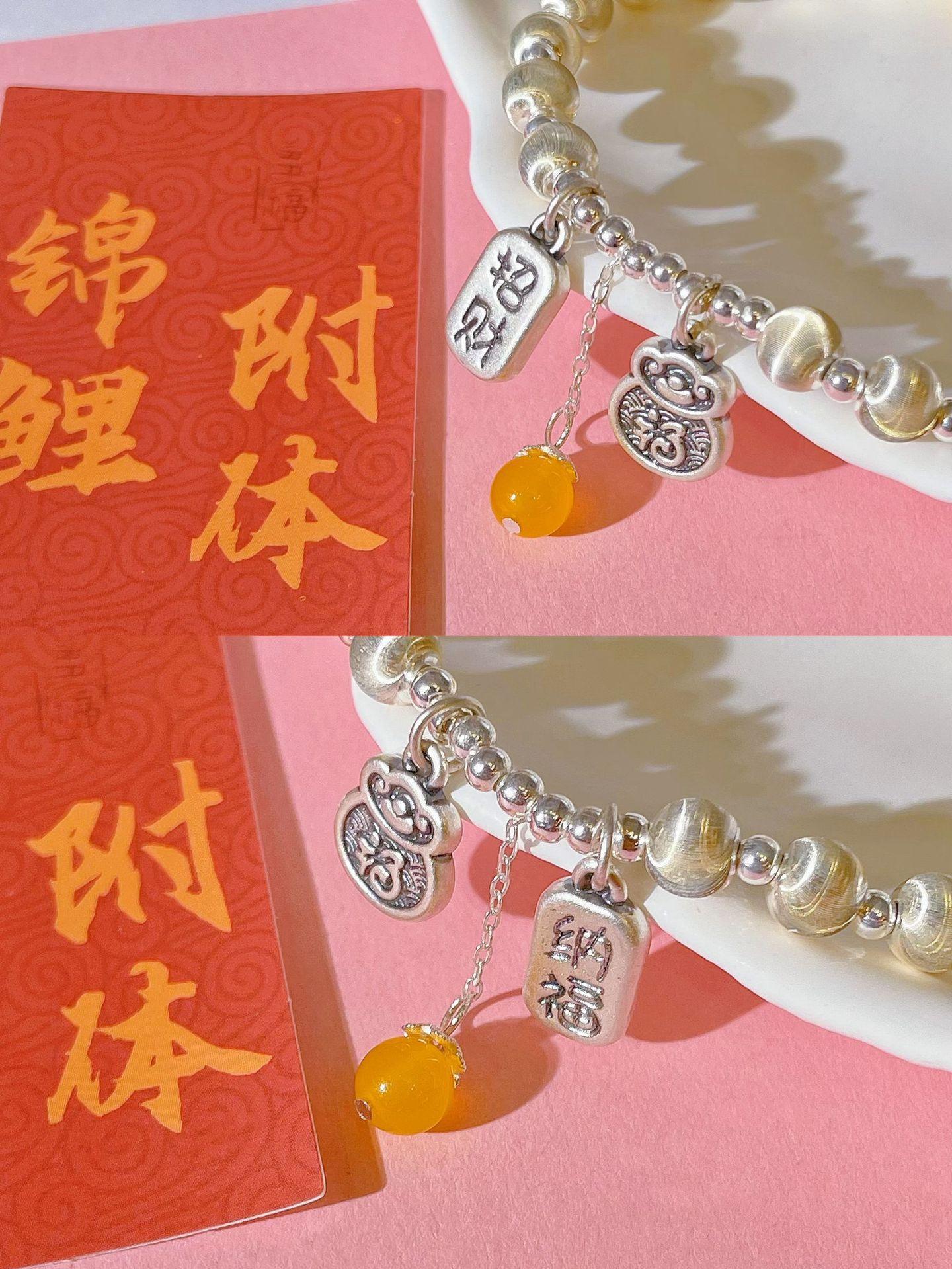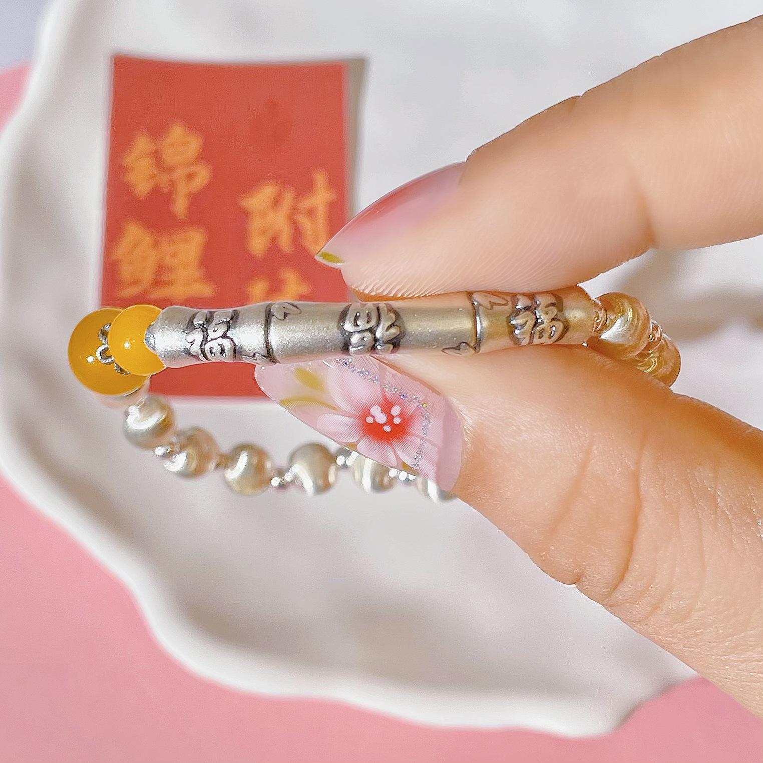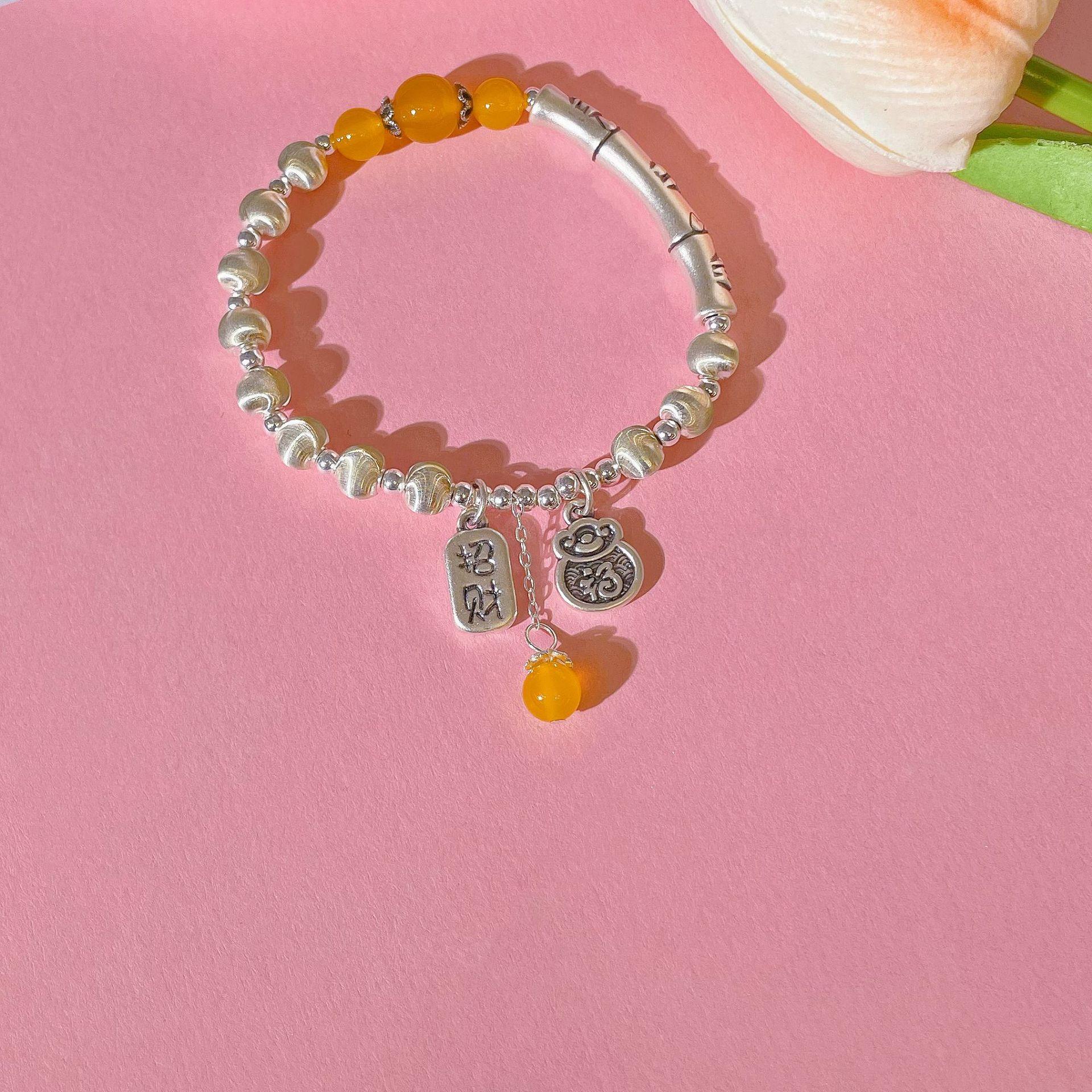 Plata esterlina plata pura S999 bolsa de la suerte suerte suerte pulsera lujo ligero pulsera para novias nicho exquisito todo combina pulsera retro