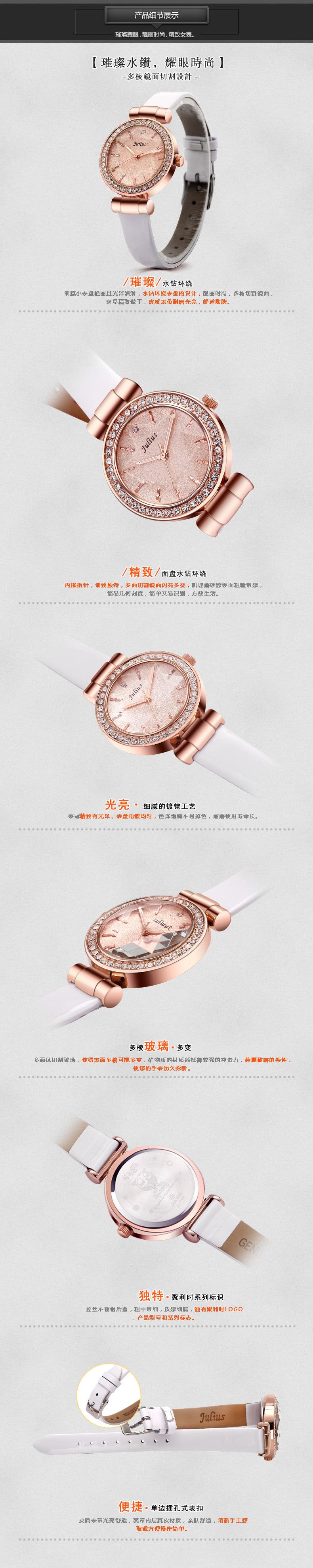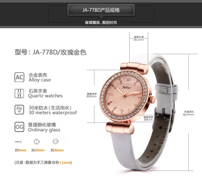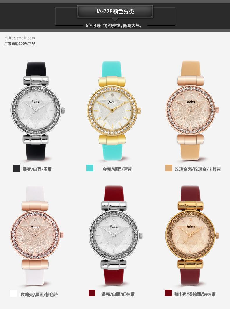 El significado de la marca JULIUS es alegre, único, amoroso, ideal, inusual y brillante. Es un reloj único que te enamorará a primera vista (Just You Will Love, un reloj único y especial). JULIUS toma este nombre y cuenta con siete series principales: Serie Clásica, Serie Emocionante, Serie Brazalete, Serie Exploración, Serie Pareja, Serie Hombre y Serie Edición Limitada.