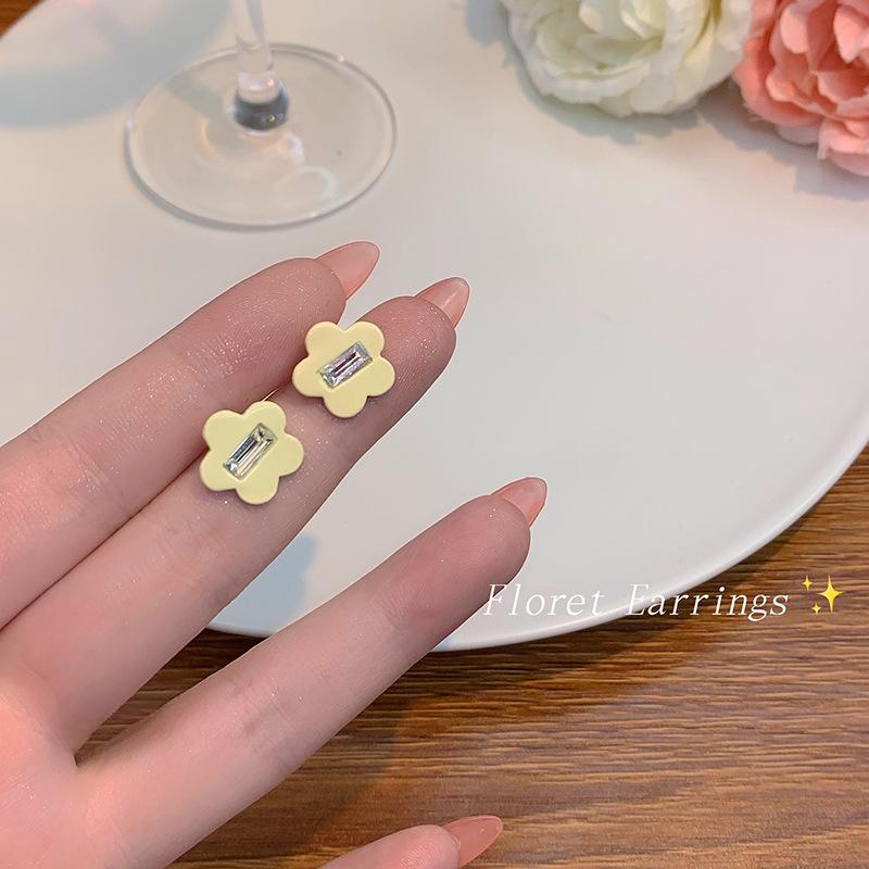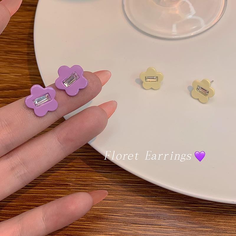 Pendientes de plata 925 con forma de aguja y pequeñas flores de estilo coreano, con microincrustaciones de circonita, sencillos, bonitos y frescos.
