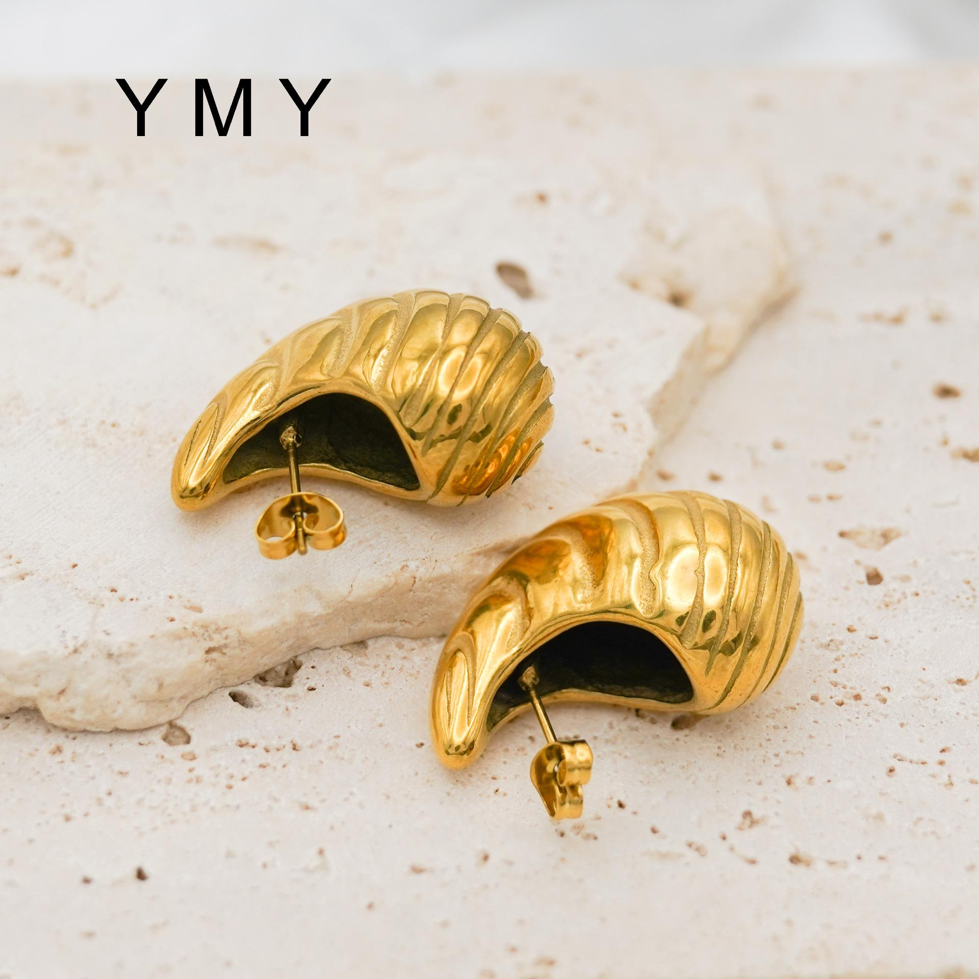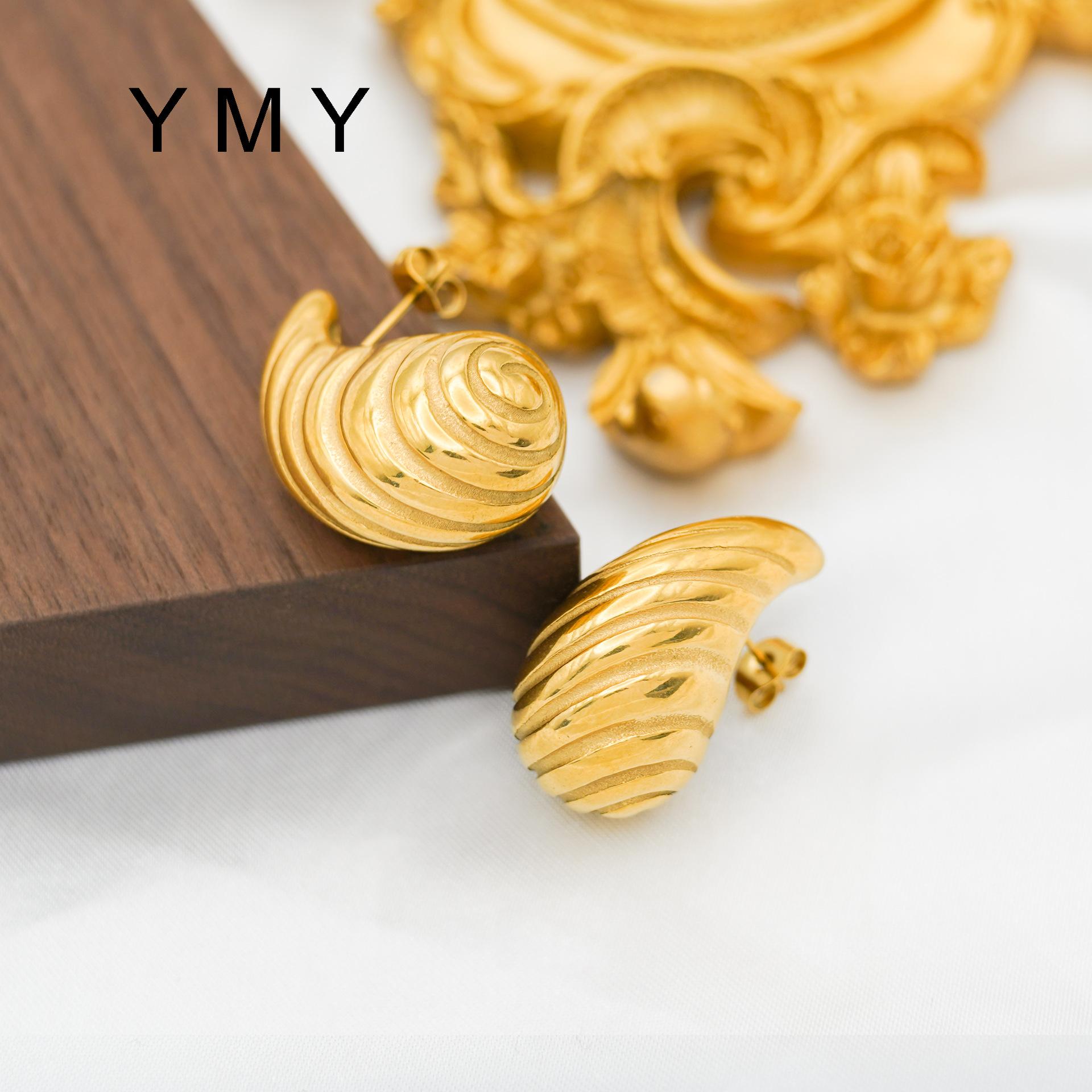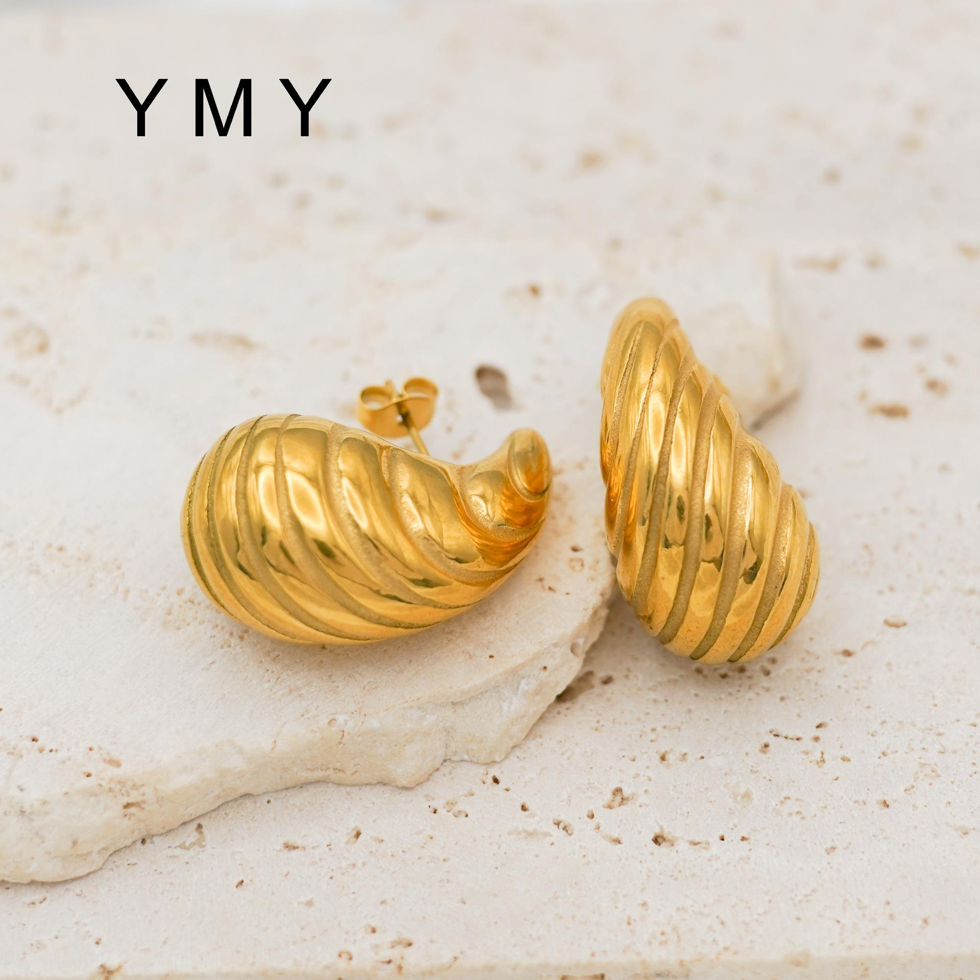 Pendientes de rayas simples con ambiente de moda europea y americana, chapados en acero de titanio y oro de 18 quilates, con personalidad y gran sentido.