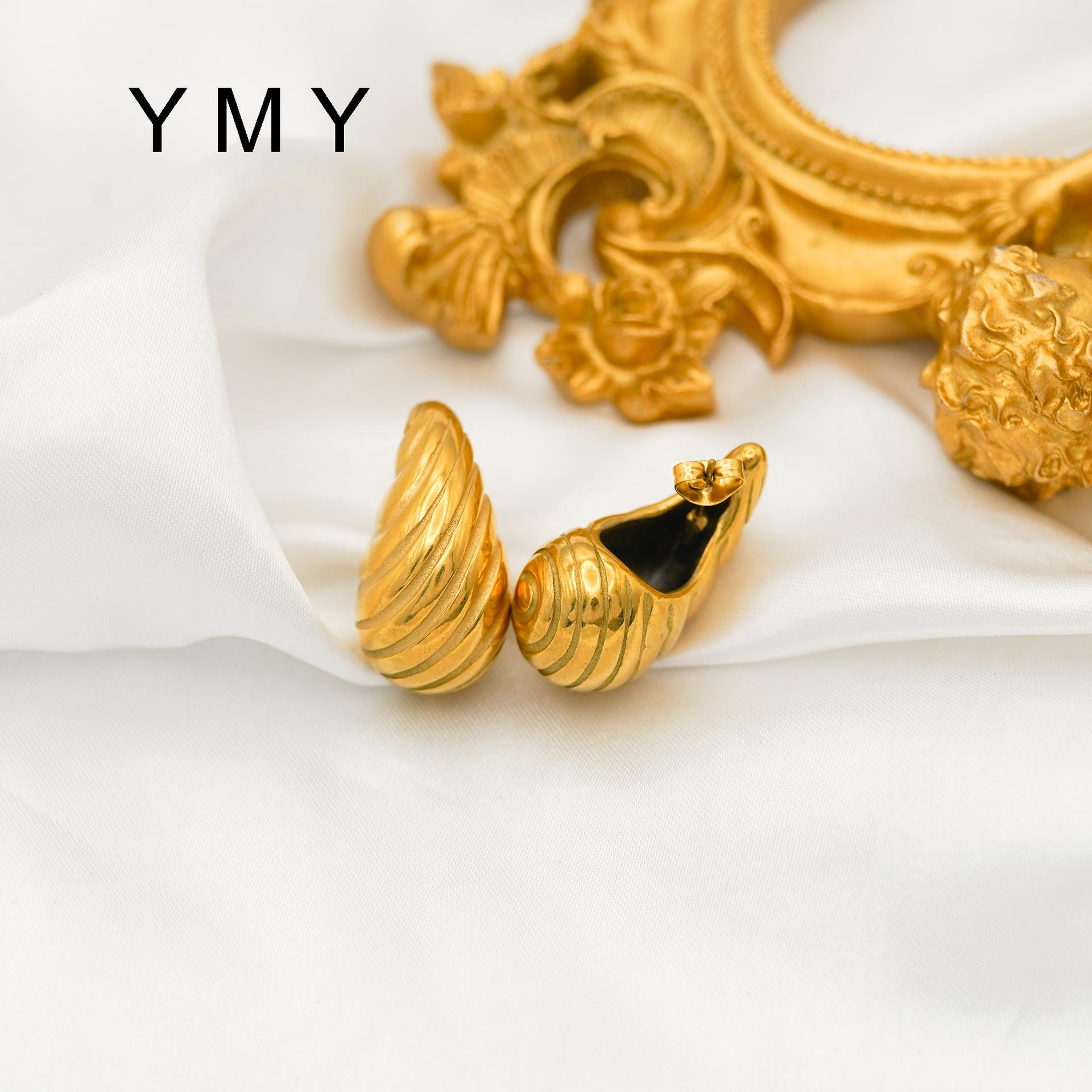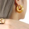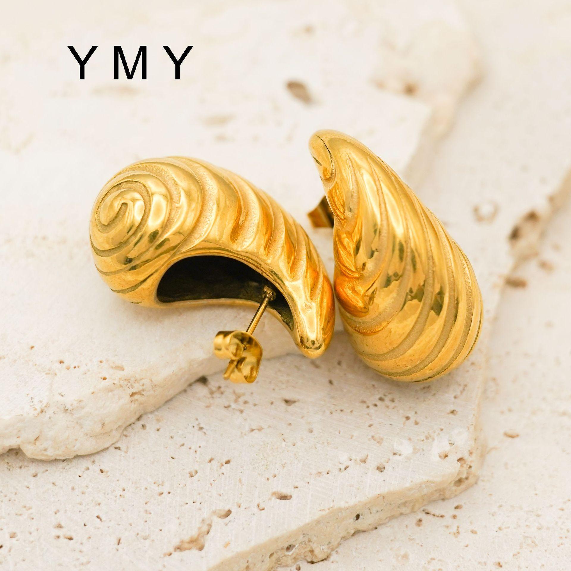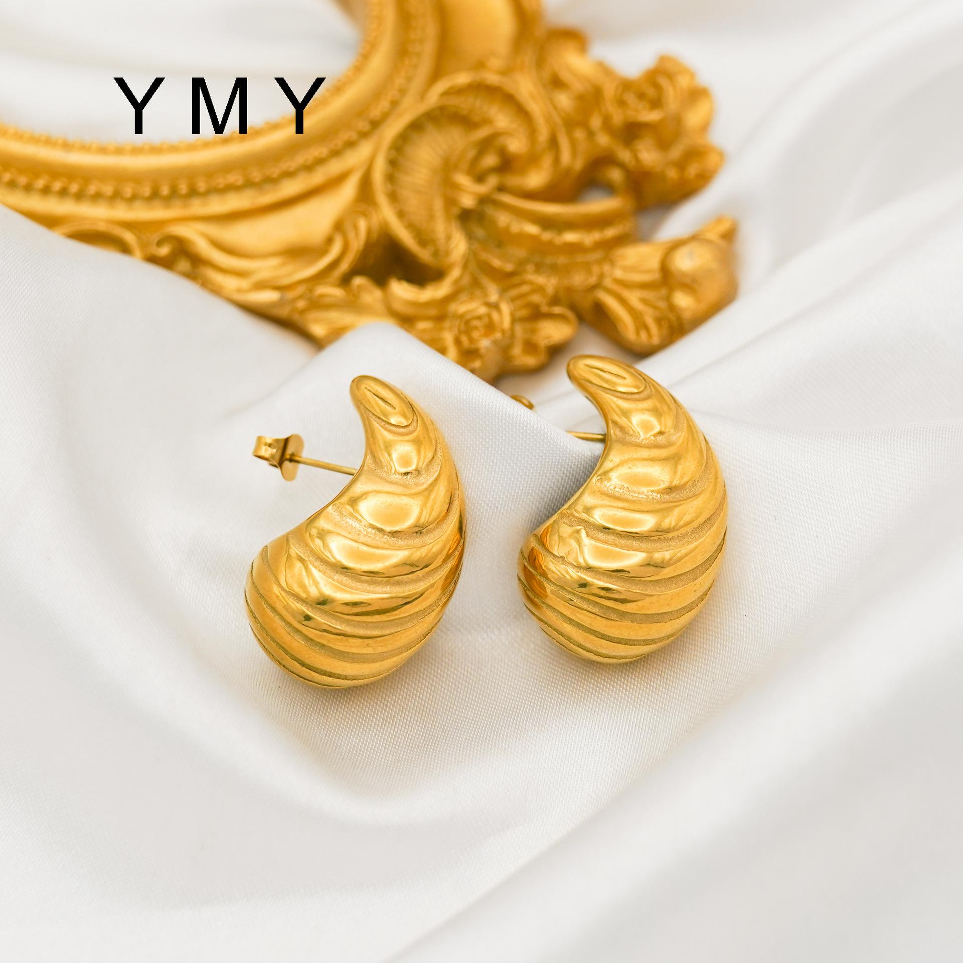 Pendientes de rayas simples con ambiente de moda europea y americana, chapados en acero de titanio y oro de 18 quilates, con personalidad y gran sentido.