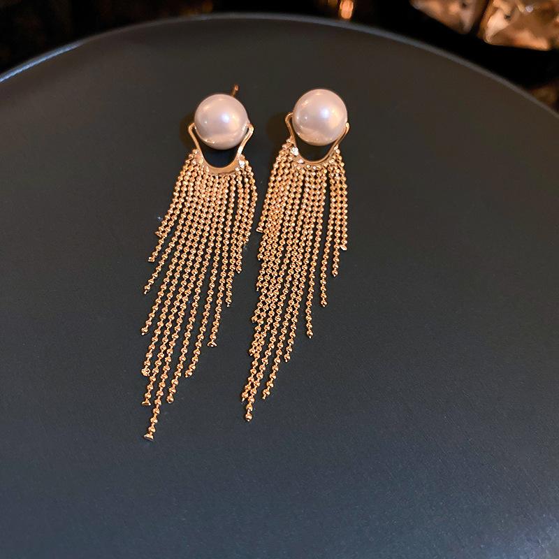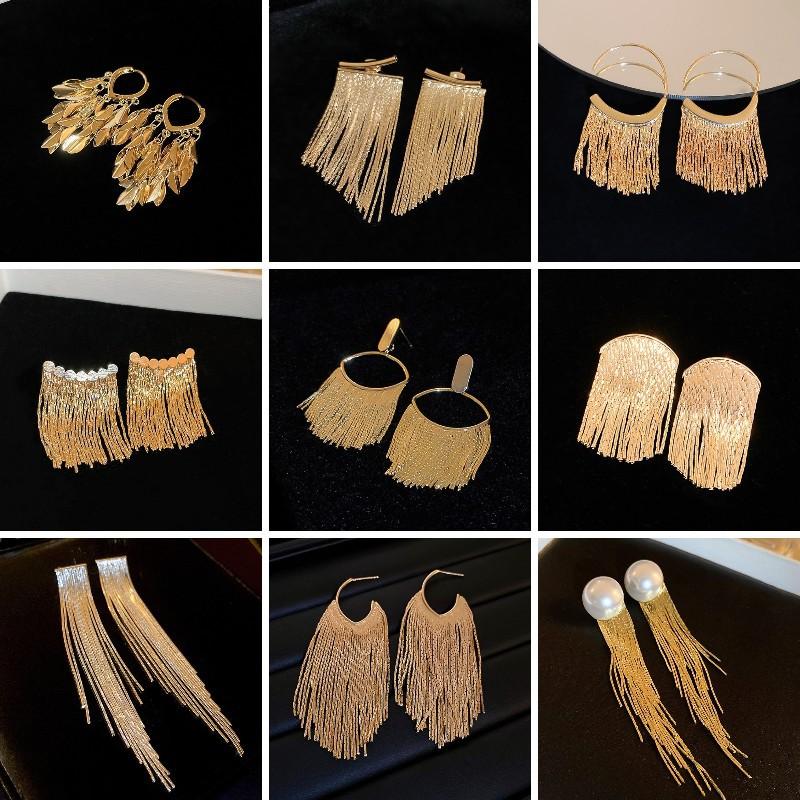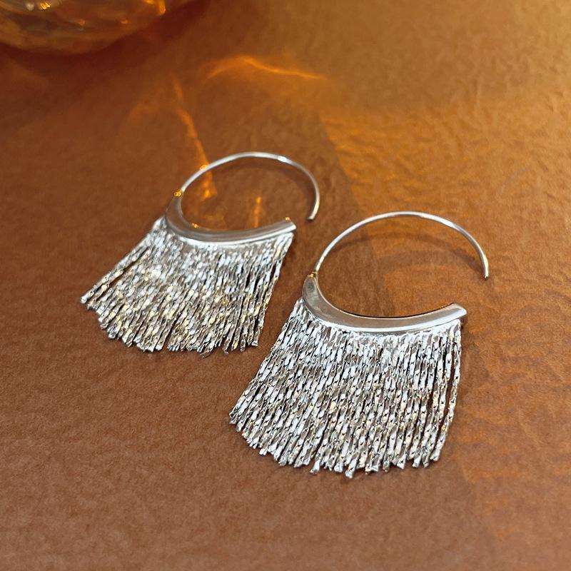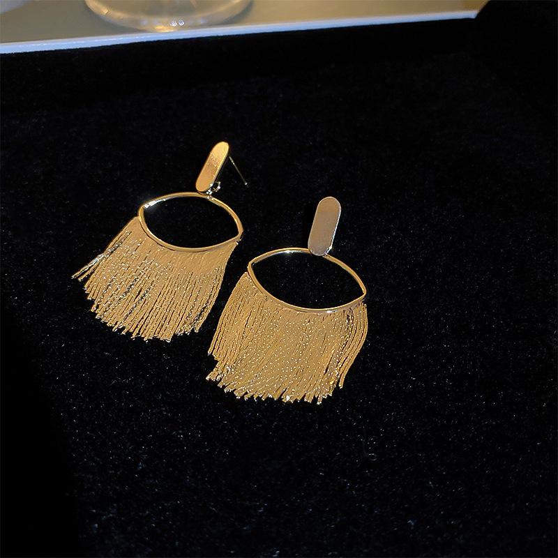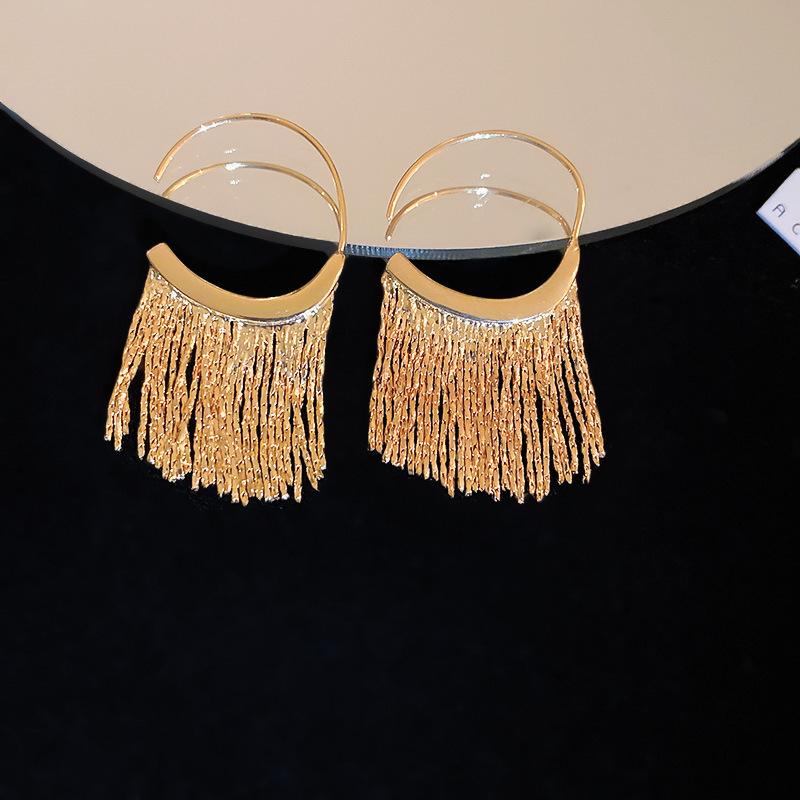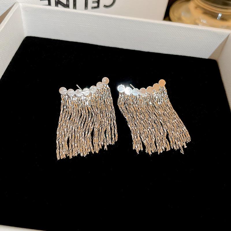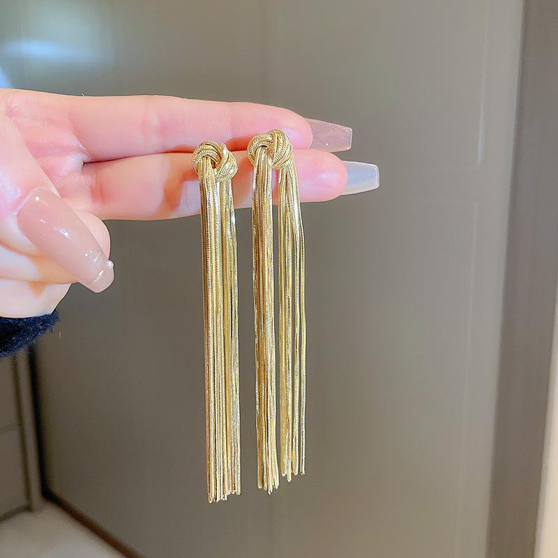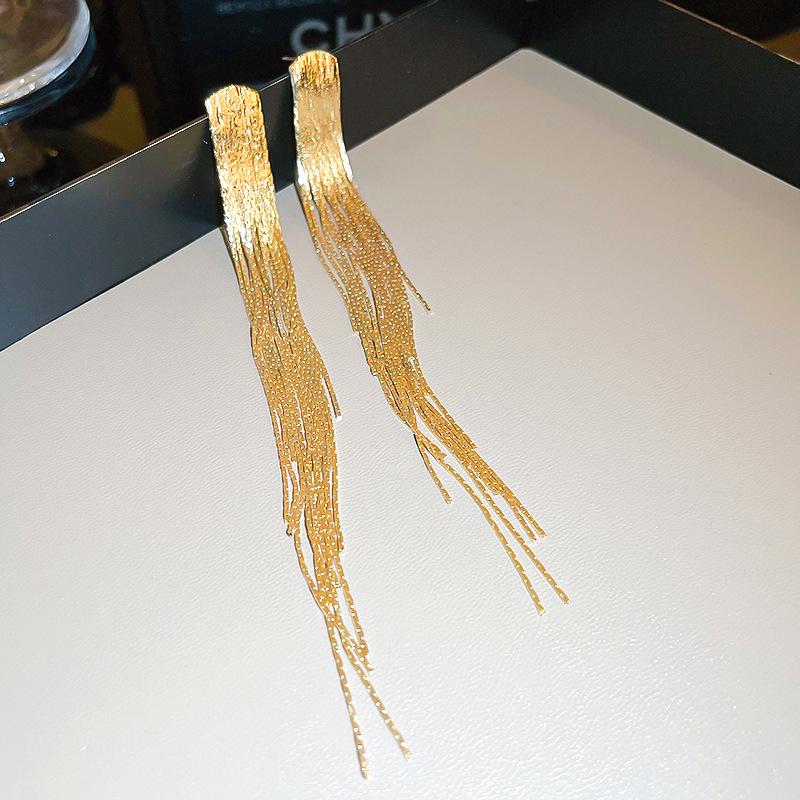 Pendientes de borlas de metal con personalidad europea y americana, pendientes largos de moda sencillos de nicho, pendientes de lujo de alta gama, venta al por mayor para mujeres
