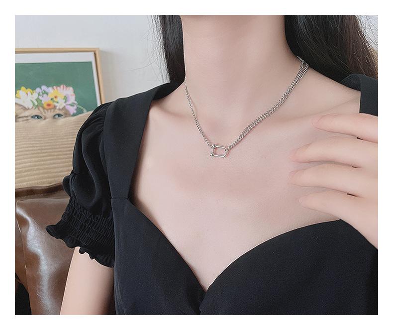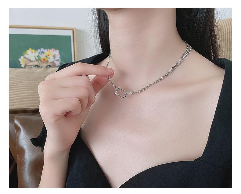 Chao Sheng Plata Esterlina S925 Collar con Colgante de Herradura en Forma de U ins Nueva Cadena de Clavícula de Moda Collar Callejero Hip-Hop para Mujer