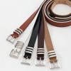 Cinturón fino de PU simple, decorativo y a la moda que combina con todo, para hombres y mujeres, estilo coreano con doble hebilla retro, cinturón con hebilla de alfiler para jóvenes, cinturón informal para pantalones.