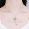 Collar con hebilla de seguridad de estilo étnico nuevo de plata esterlina con borlas, cadena de lana, colgante de jade retro a juego, accesorios de moda