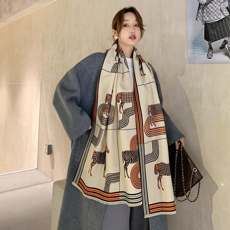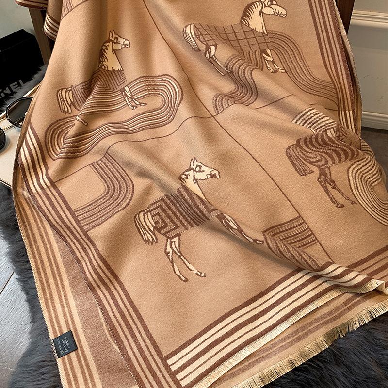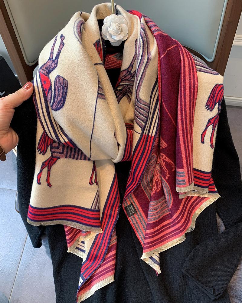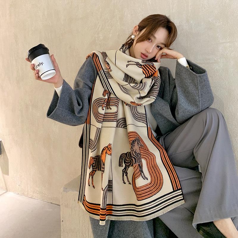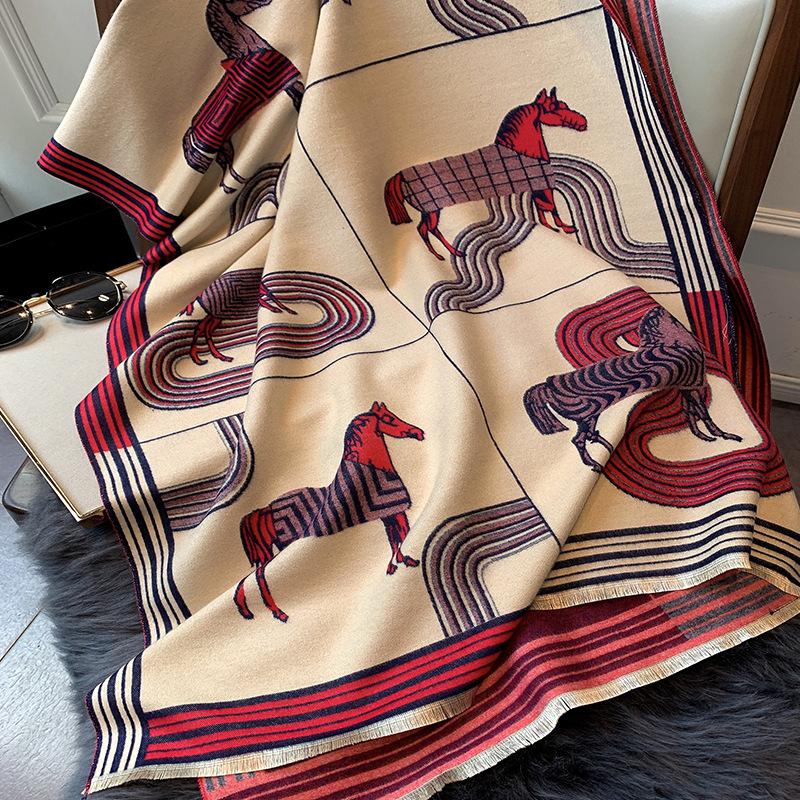 Bufanda de cachemira cálida de invierno 2022 para mujer, chal de aire acondicionado mediano y largo, estilo retro con borlas de caballo para el cuello.