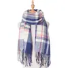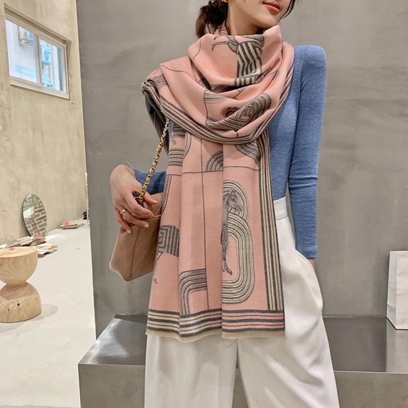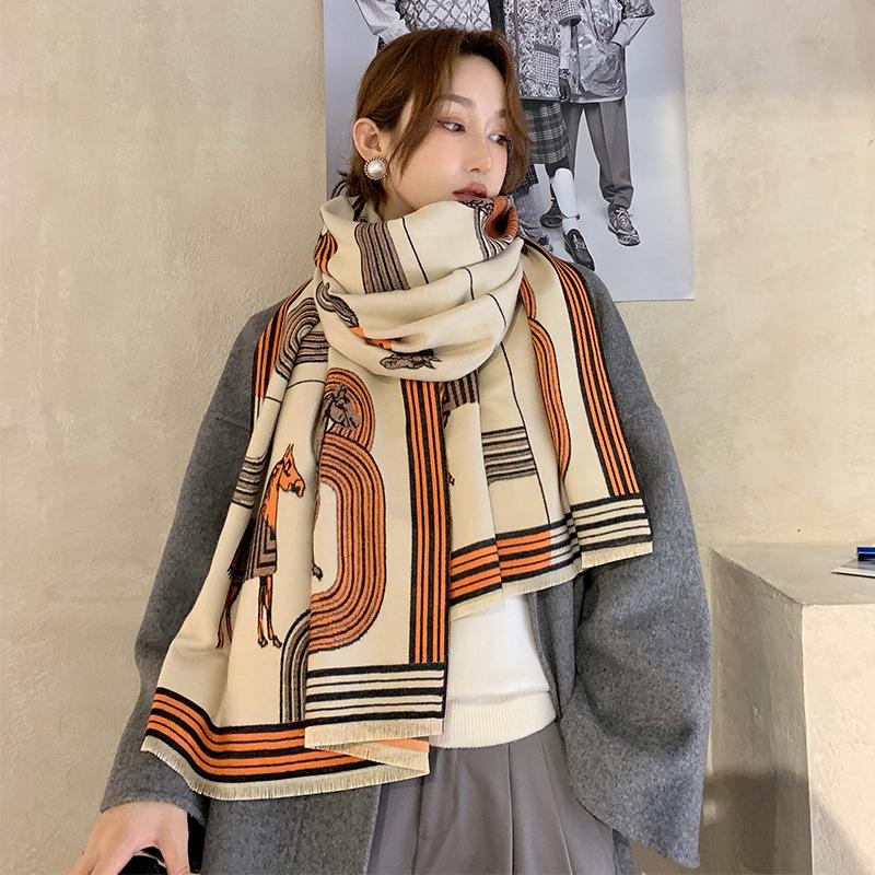 Bufanda cálida nueva de otoño e invierno con letra H a juego de colores para mujer, chal largo grueso y cálido de doble cara de imitación de cachemira