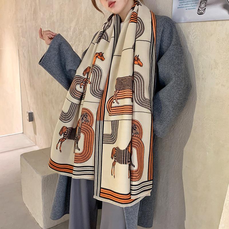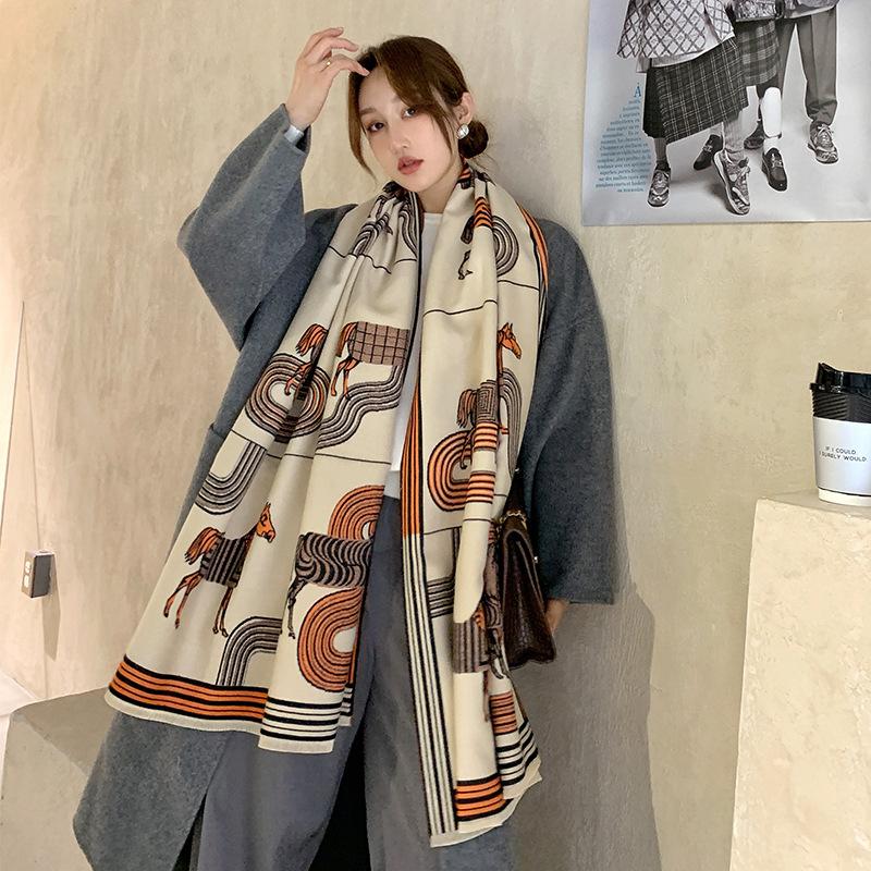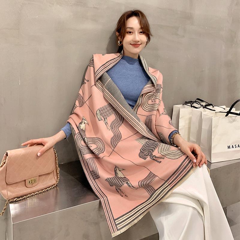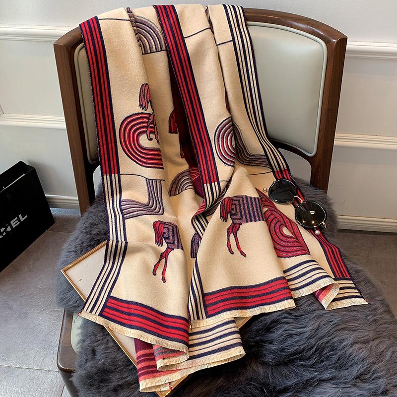 Bufanda cálida de cachemir estilo carruaje, estilo retro europeo y americano, otoño e invierno, 2023, chal grueso de doble cara para mujer