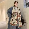 Bufanda de cachemira de imitación con estampado de leopardo coreano para mujer, estilo coreano de invierno, bufanda de cuello gruesa y cálida de doble cara, resistente al frío y al viento.
