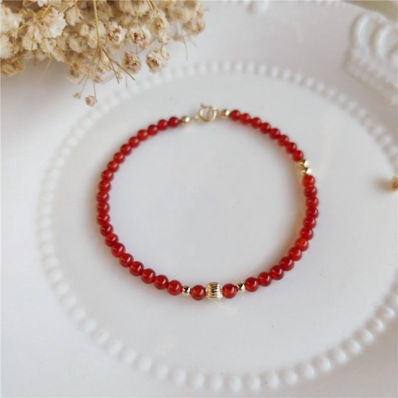 Ágata roja natural de aproximadamente 3 mm pulsera de anillo único original DIY para mujer pulsera versátil para mujer con cuentas de oro