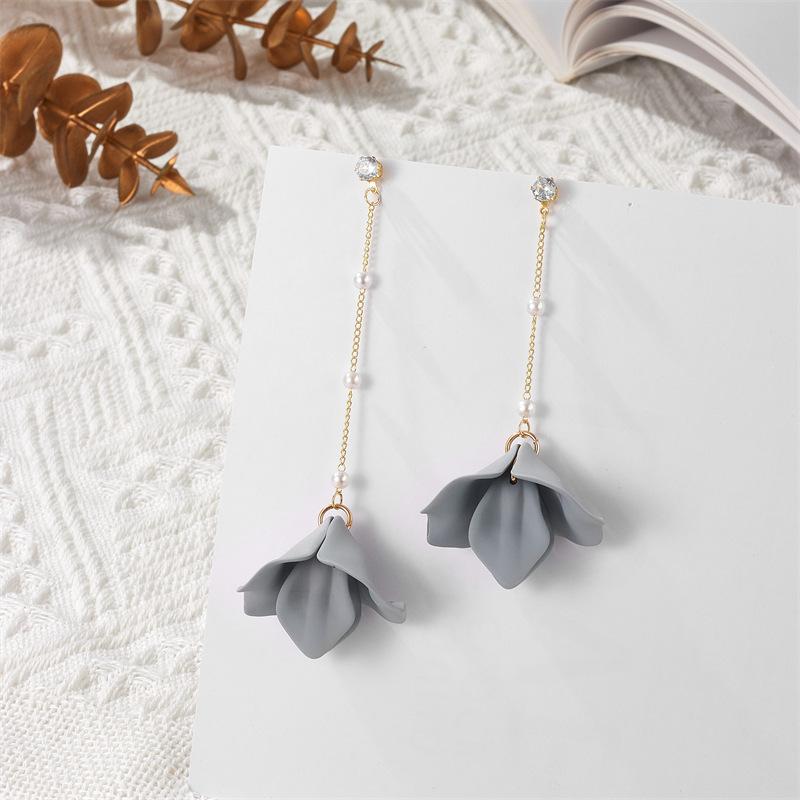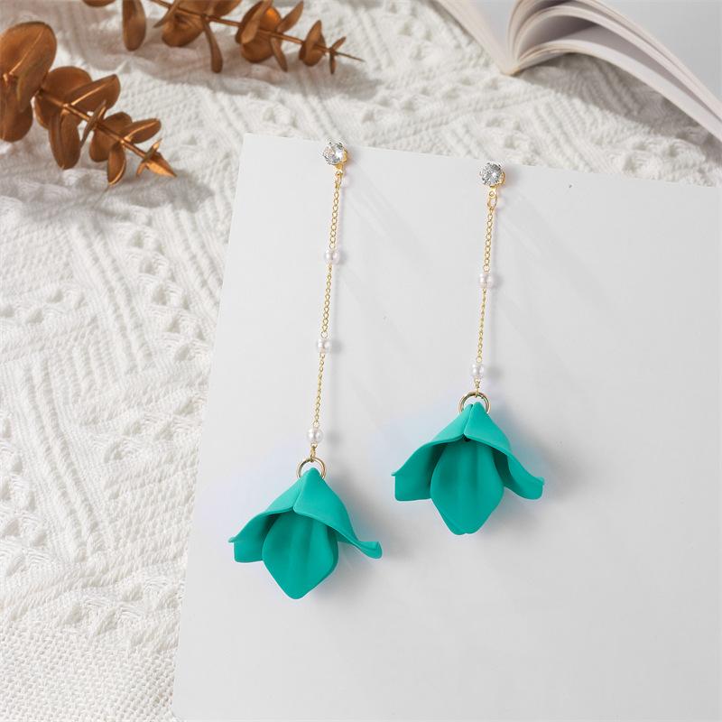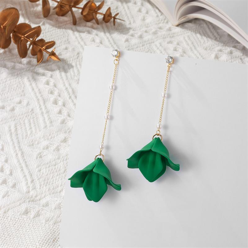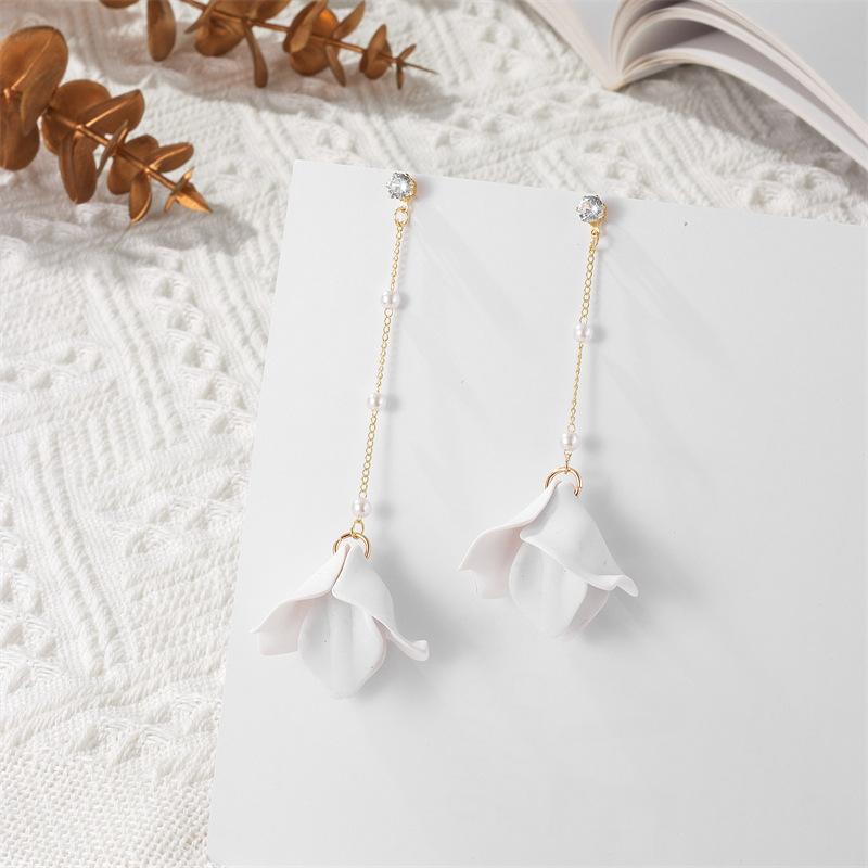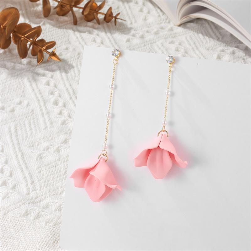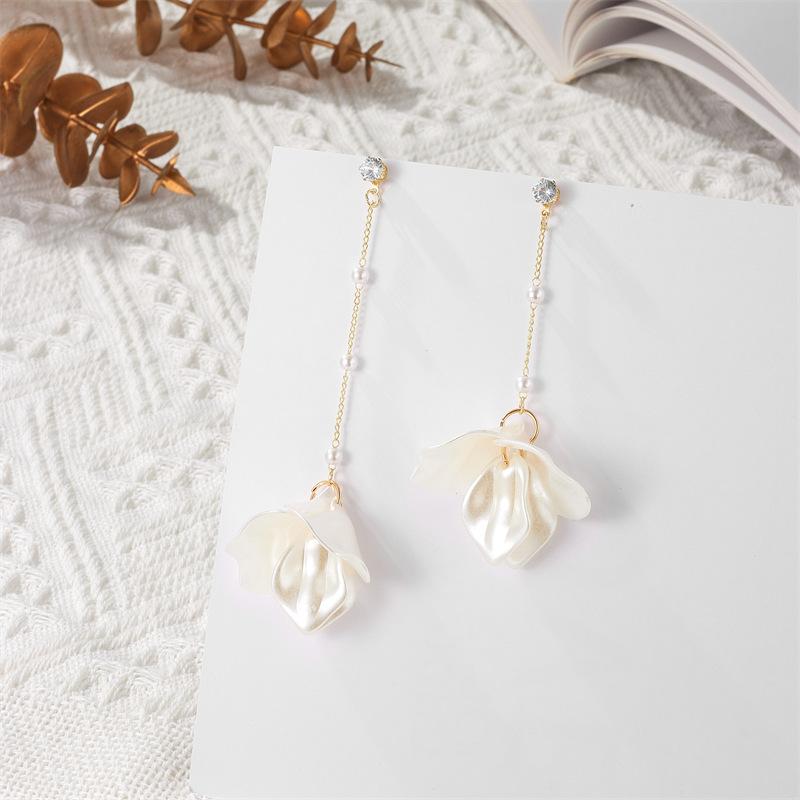 Pendientes largos de estilo coreano con pequeñas flores y cadena de perlas, pendientes de izquierda y derecha e incorrectos, elegantes pendientes de plata 925 para mujer.