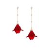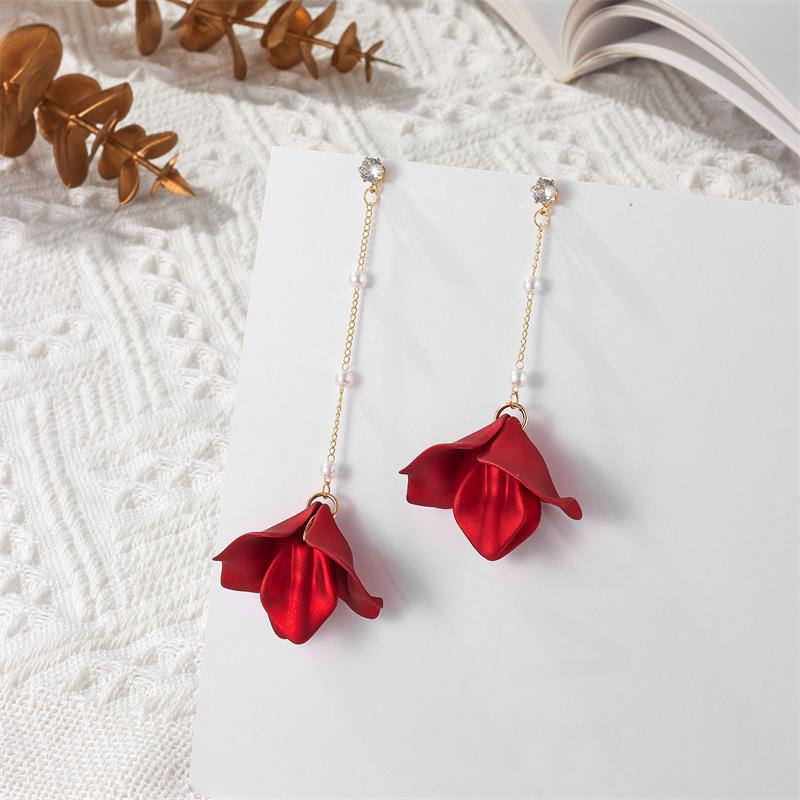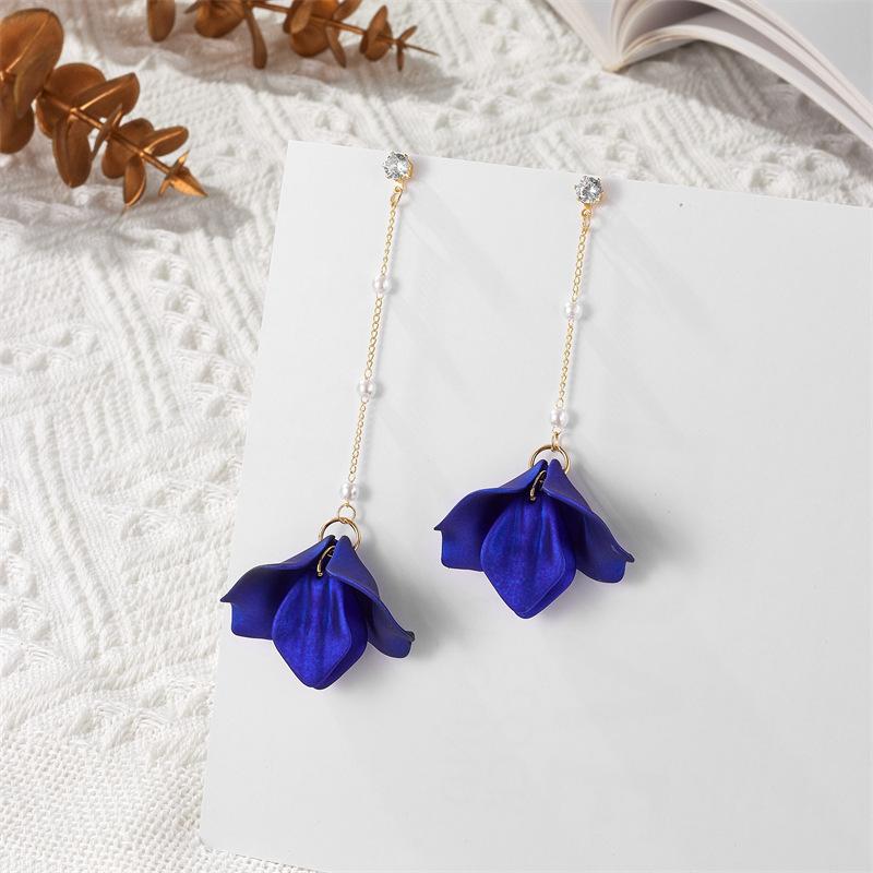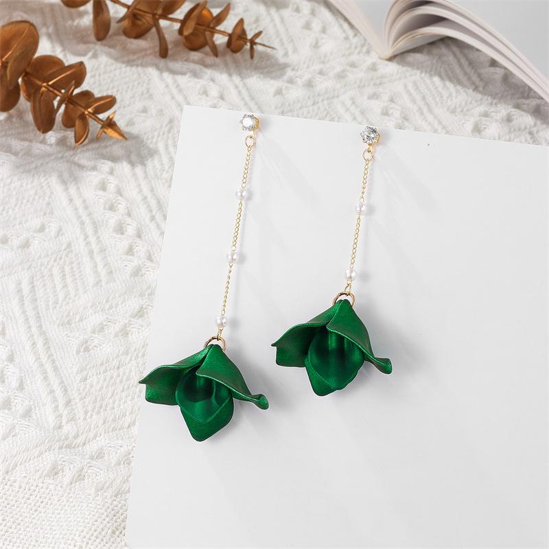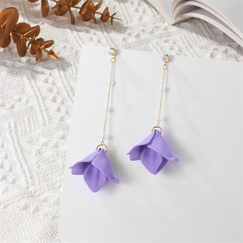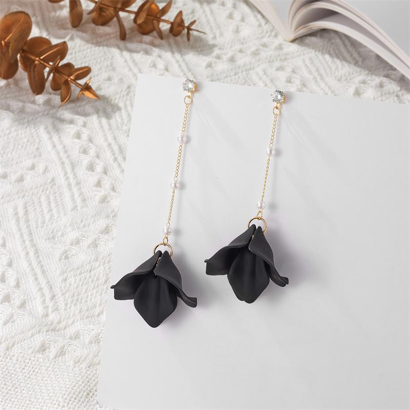 Pendientes largos de estilo coreano con pequeñas flores y cadena de perlas, pendientes de izquierda y derecha e incorrectos, elegantes pendientes de plata 925 para mujer.