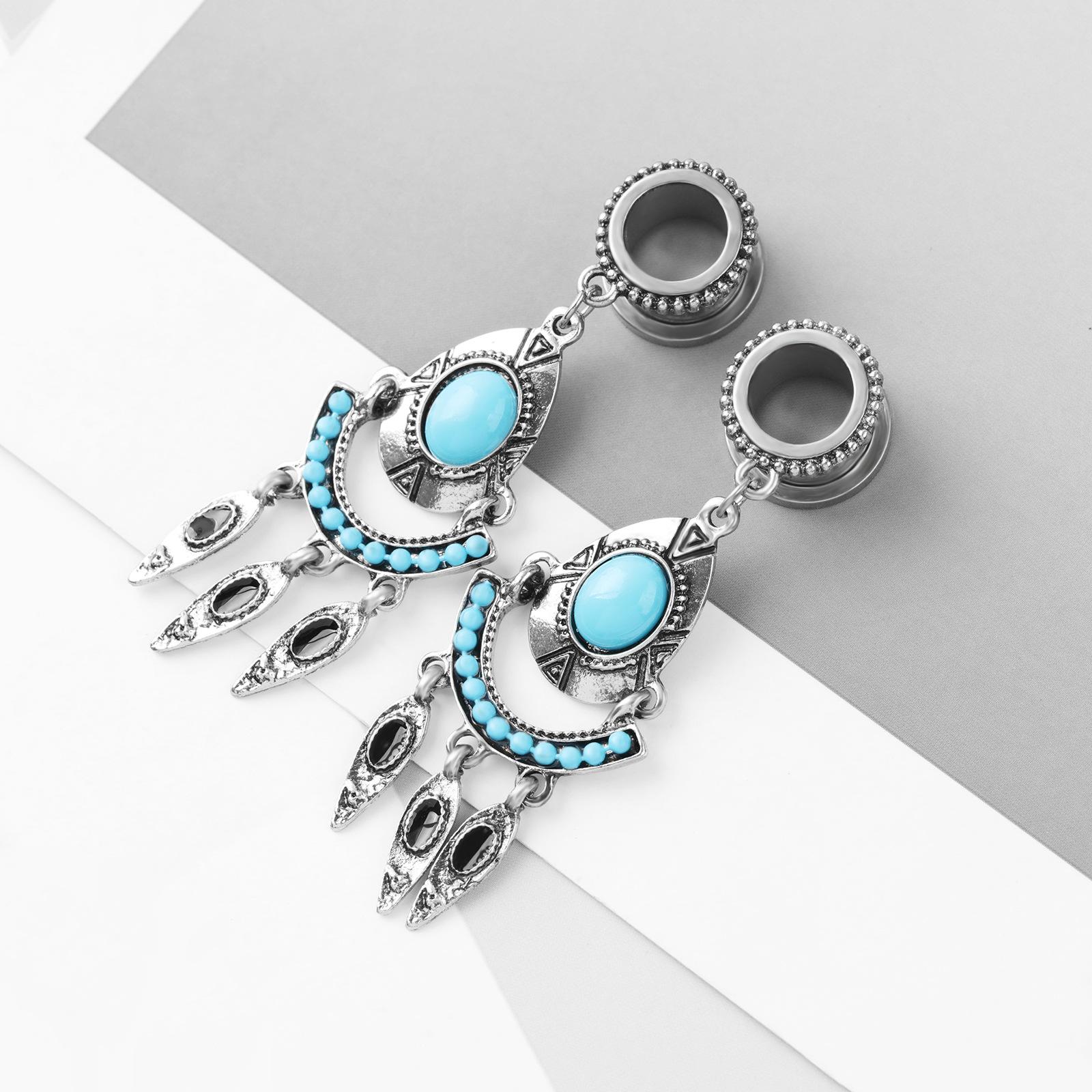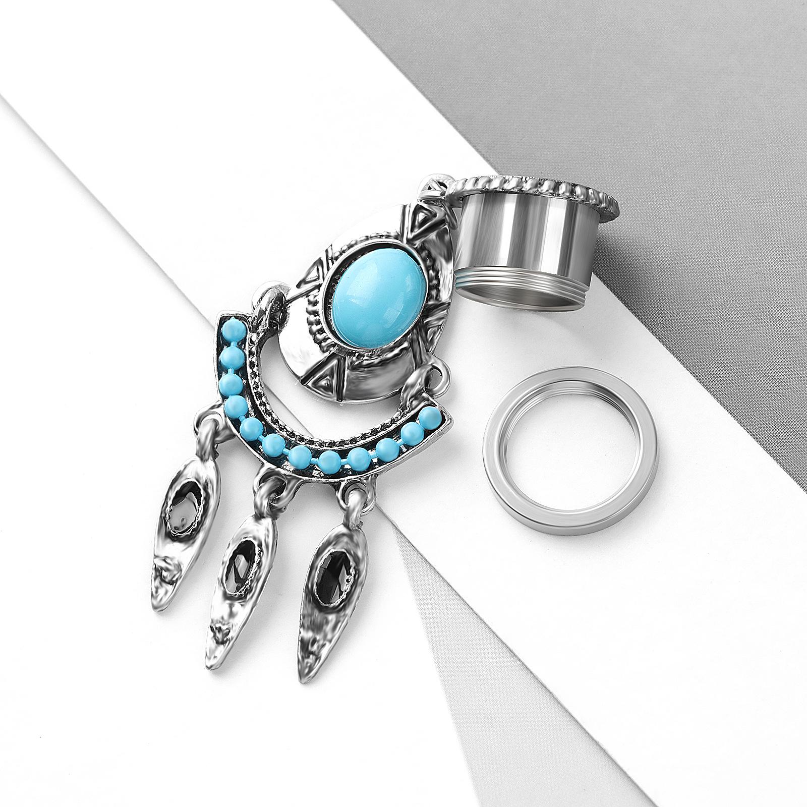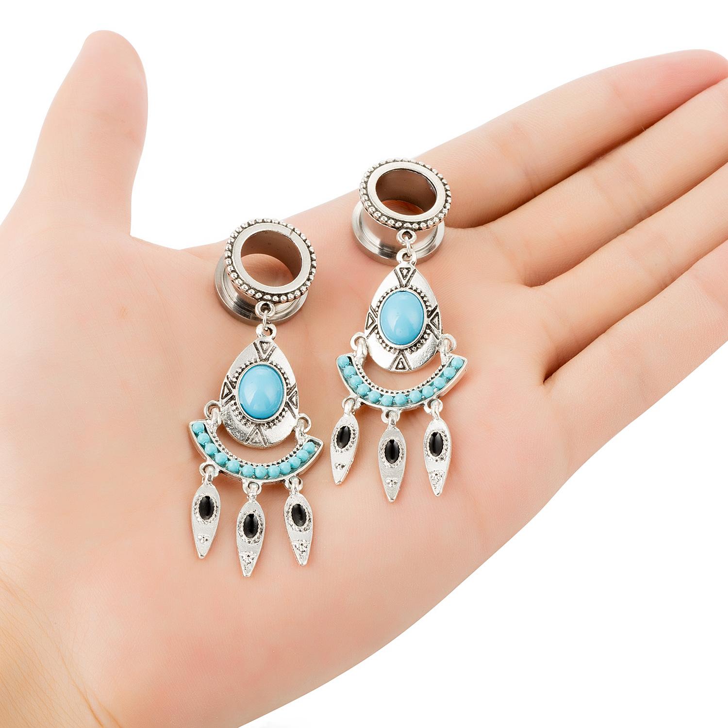 Amazon nuevo acero inoxidable colgante de borla expansión de oreja metal turquesa aurícula piercing corporal joyería al por mayor