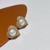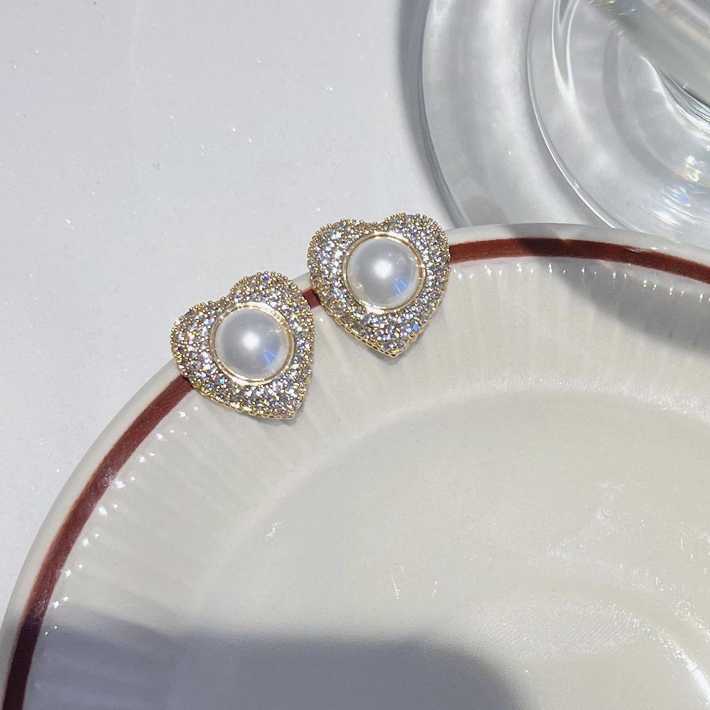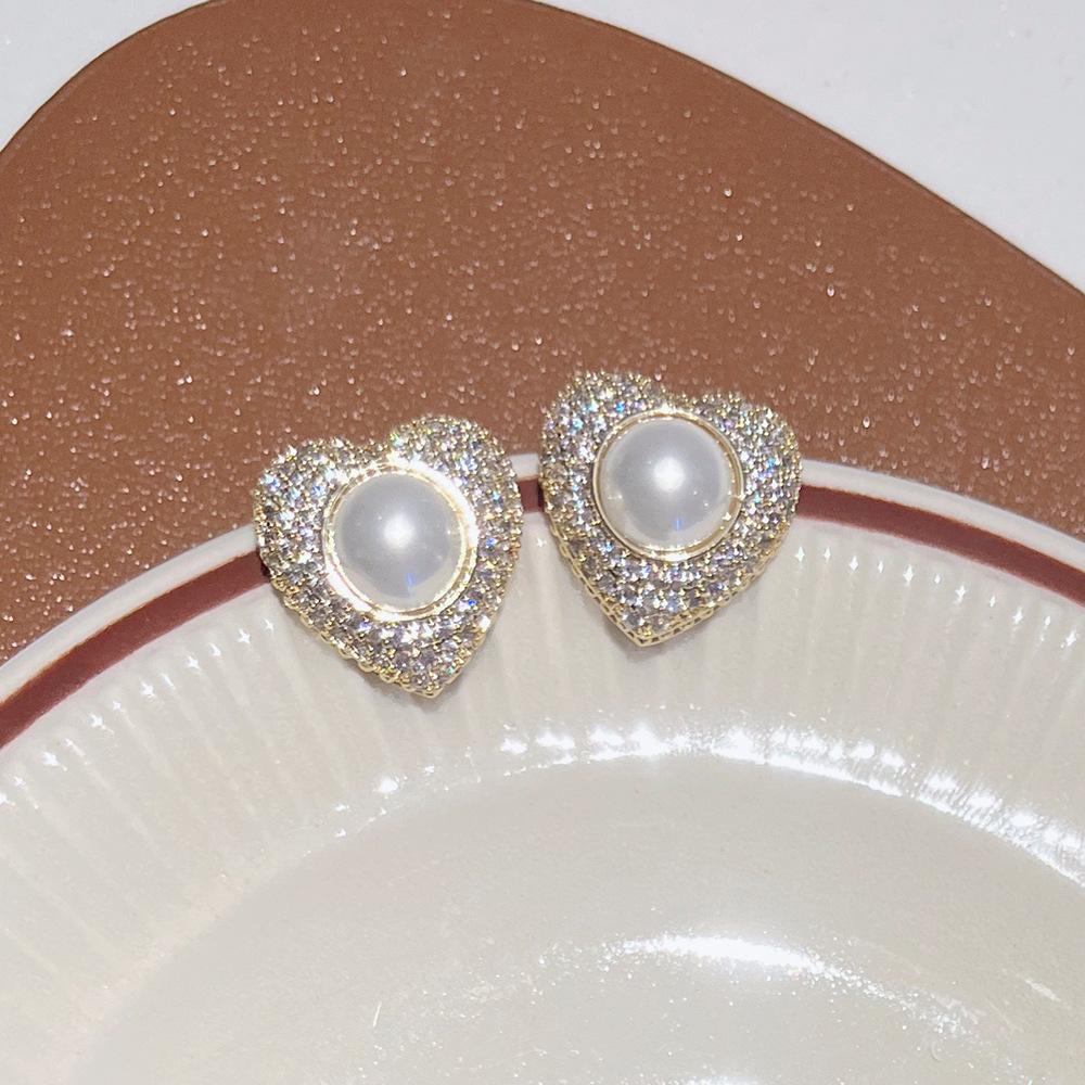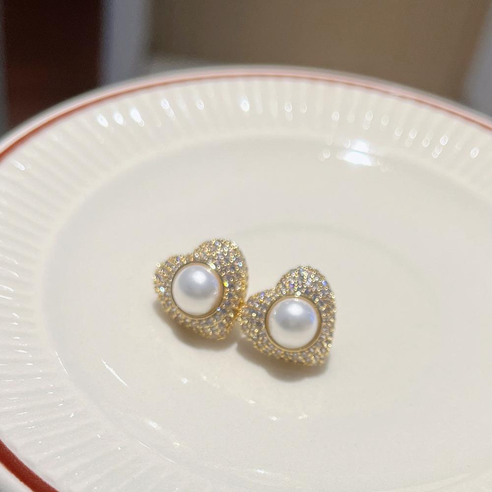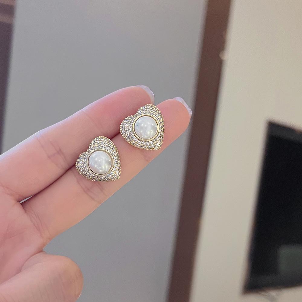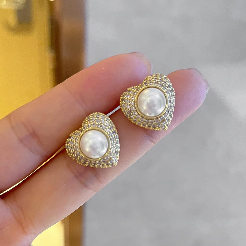 Aretes de perlas encantadores chapados en oro real, aretes de moda de alta gama, elegantes estilo Chanel, aretes de circonita micro incrustada de red roja