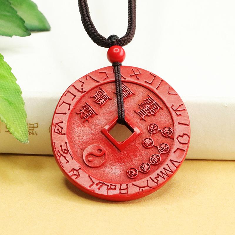 Colgante de cinabrio Aiyu con arena roja y moneda de cinco lei. Collar de cinabrio. Entrega al por mayor de fábrica. AY4022304
