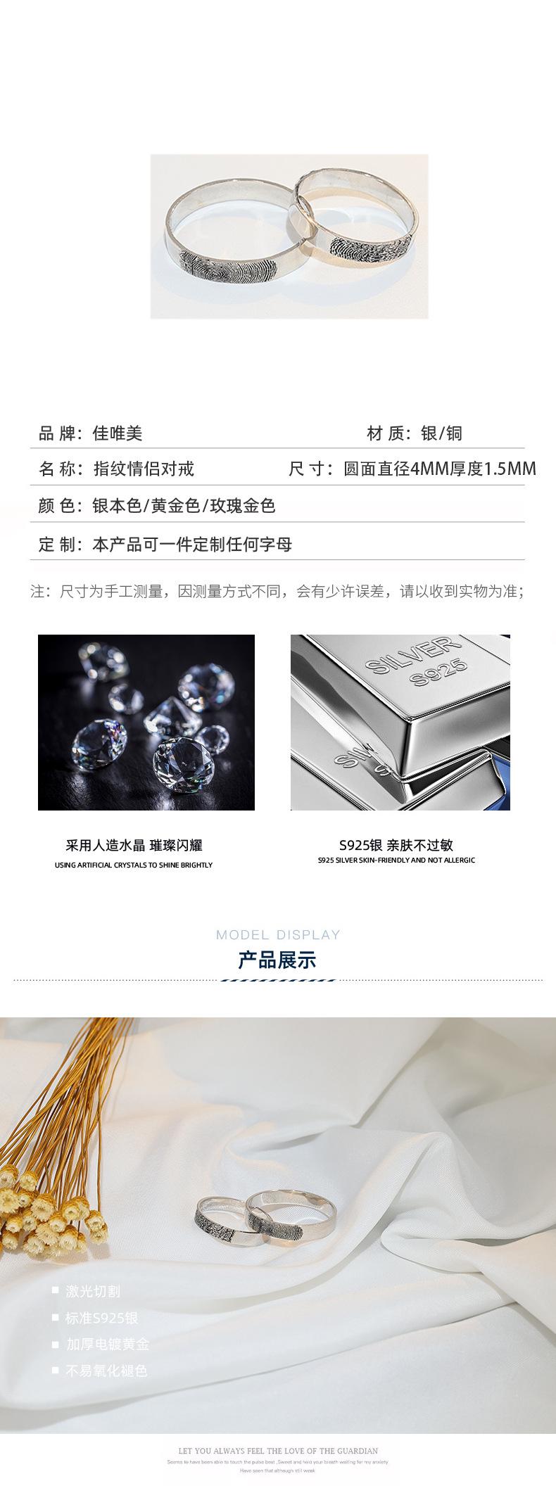 Anillo de plata esterlina S925 mate versión coreana de anillo de plata con huella digital personalizado joyería de plata anillo para amantes anillo abierto anillo al por mayor