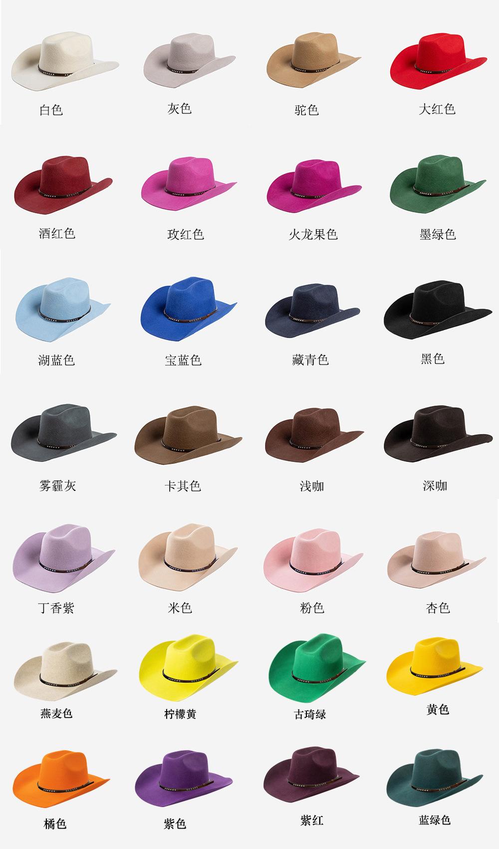 Moda de otoño e invierno sombrero de vaquero occidental sombrero casual de lana con remaches cinturón al aire libre circunferencia de cabeza grande sombrero de fieltro