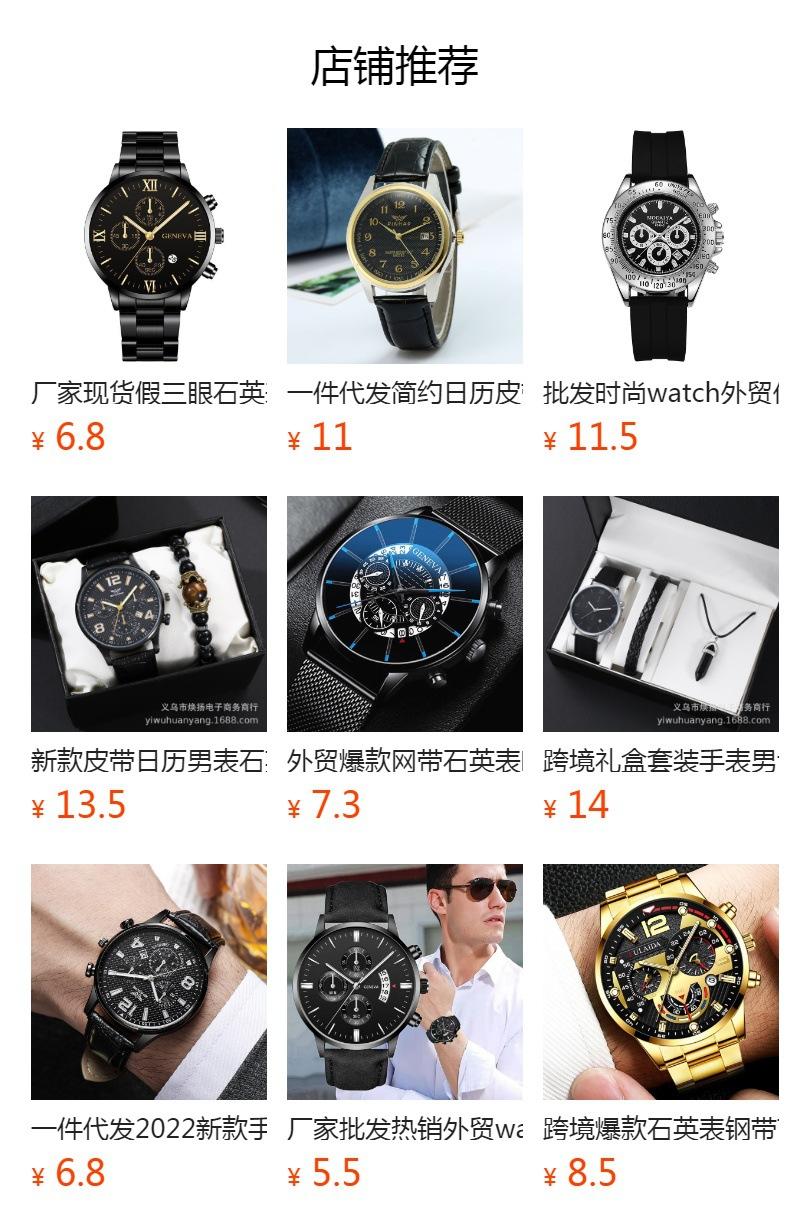 Comercio electrónico transfronterizo, comercio exterior, relojes de moda al por mayor, relojes de aleación con correa, relojes de cuarzo de Ginebra para hombre, relojes con calendario único