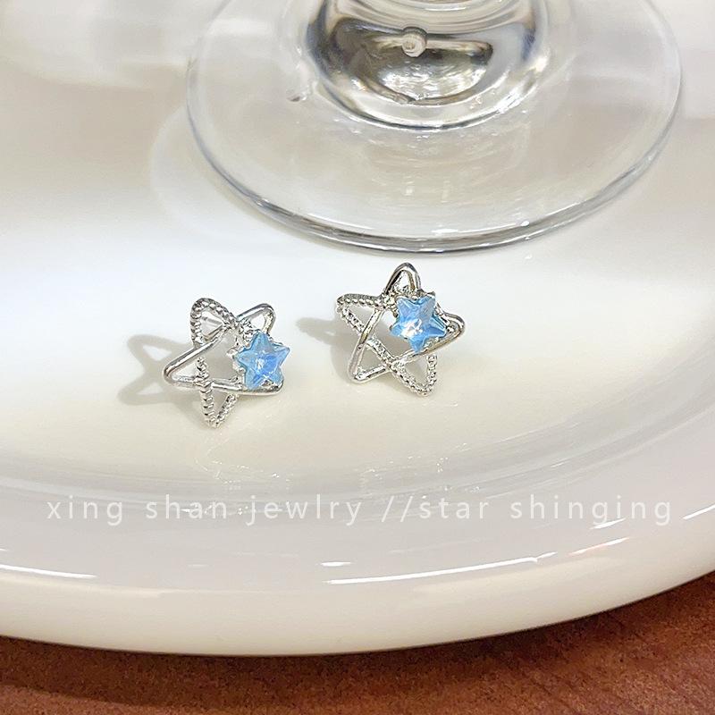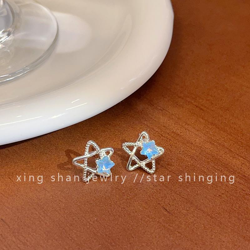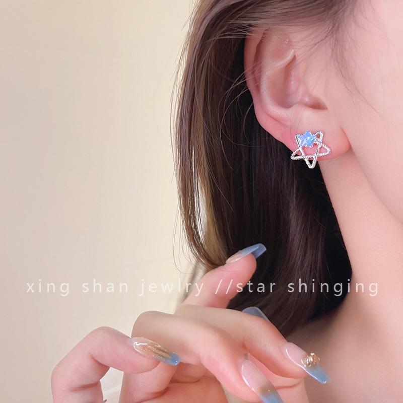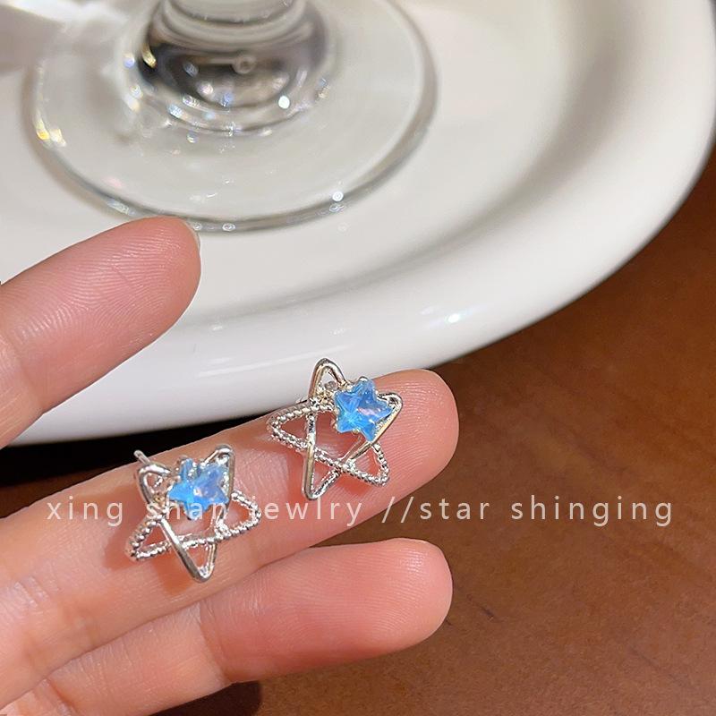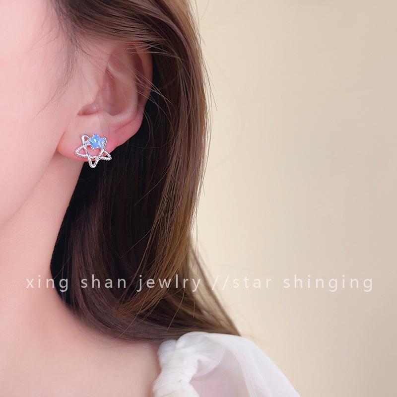 Pendientes sencillos de estrellas azules para mujer, pendientes de verano pequeños, frescos y exquisitos, pendientes de temperamento 2024, nuevos pendientes de alto sentido