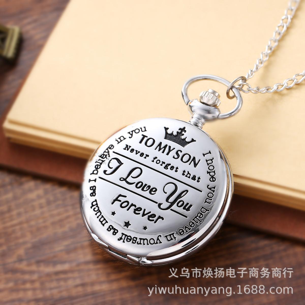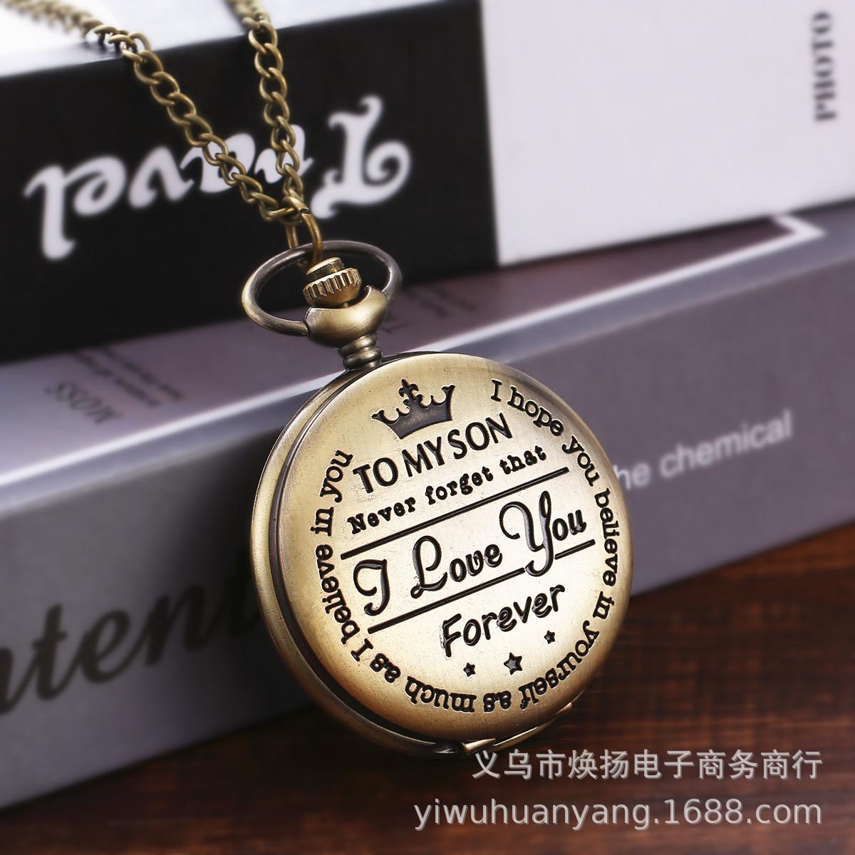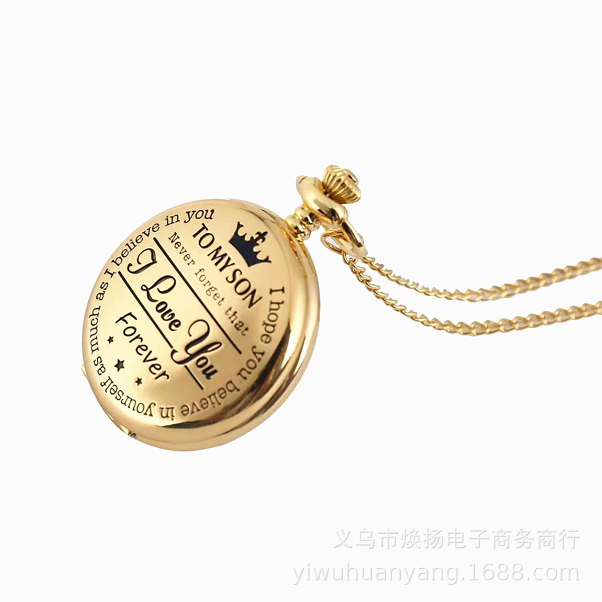 Reloj de bolsillo con diseño de explosión de comercio exterior, venta al por mayor, collar colgante, reloj de cuarzo vintage, regalo de vacaciones para mi hijo.
