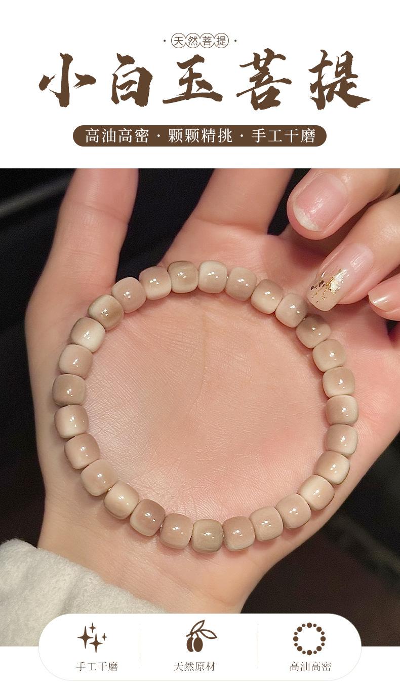 Pulsera de bodhi de jade blanco pequeño con piel de flor natural para estudiantes hombres y mujeres, bodhi alrededor del dedo, cuentas suaves de Buda para jugar al por mayor