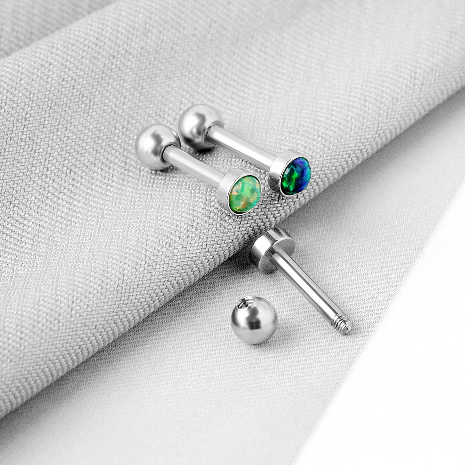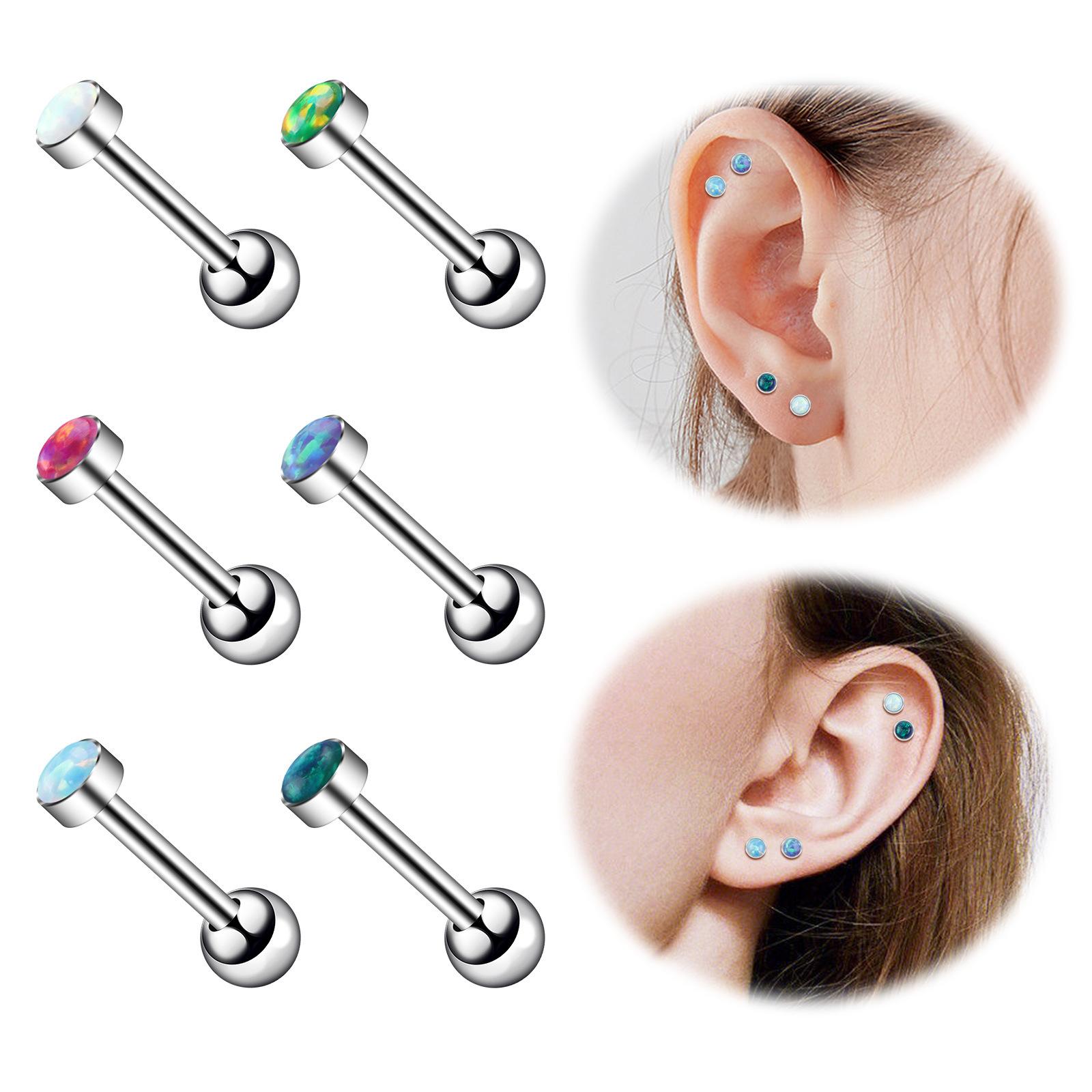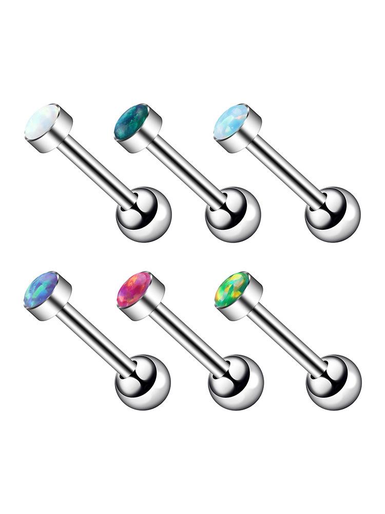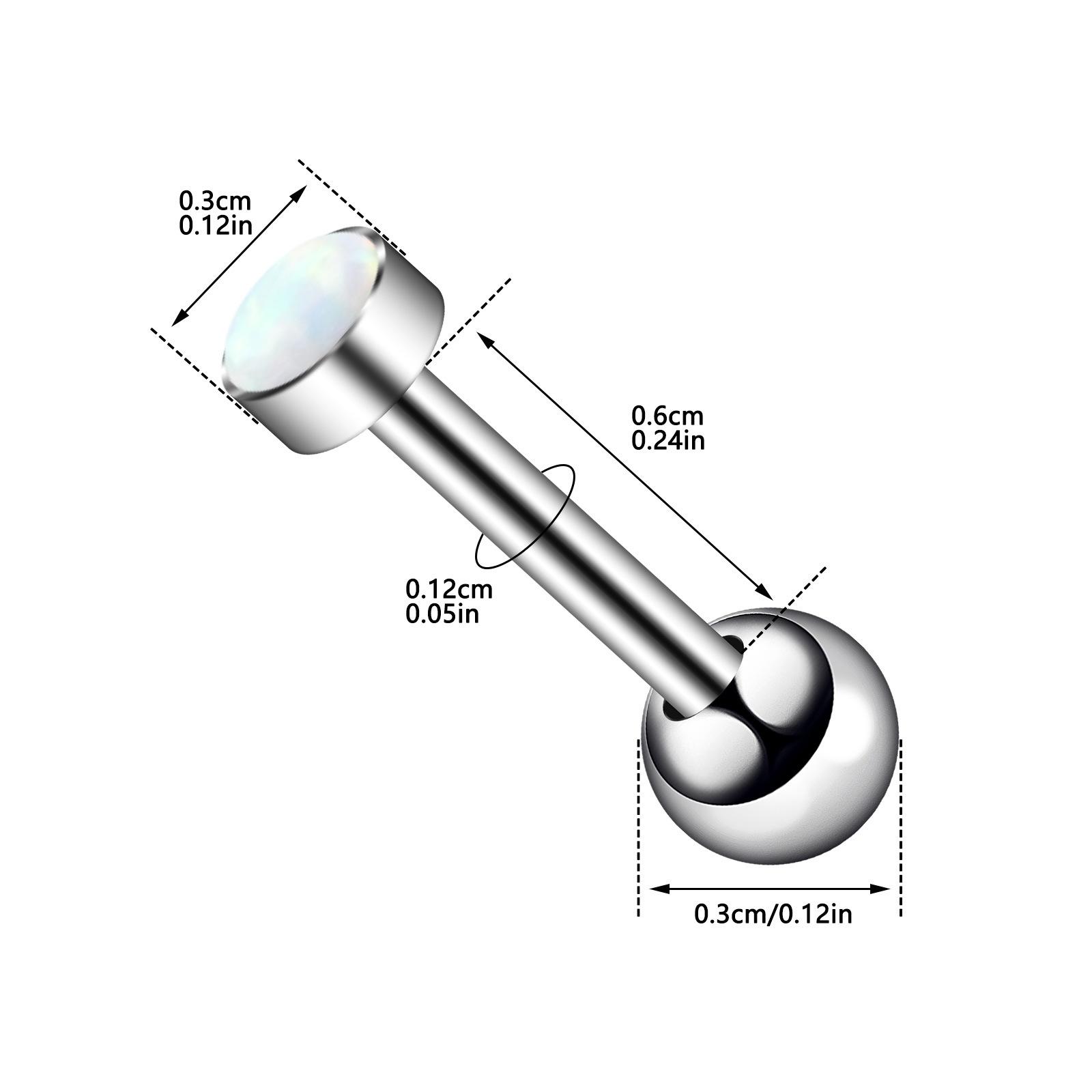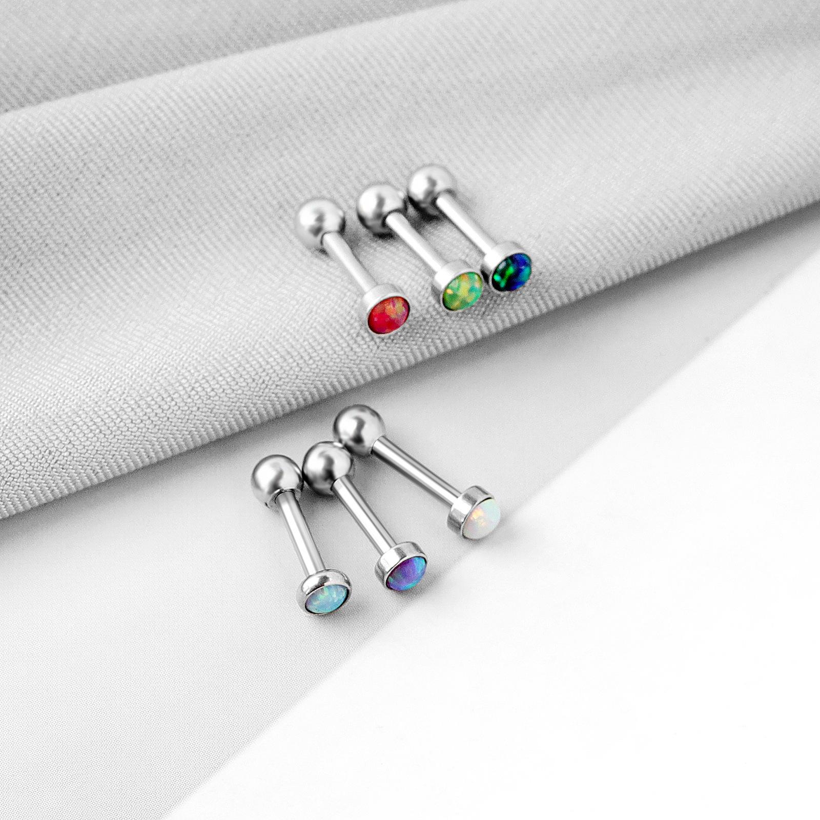 Populares nuevos aretes de acero inoxidable transfronterizos color aretes ópalo fondo redondo clavo para la nariz labio lengua joyería para perforación