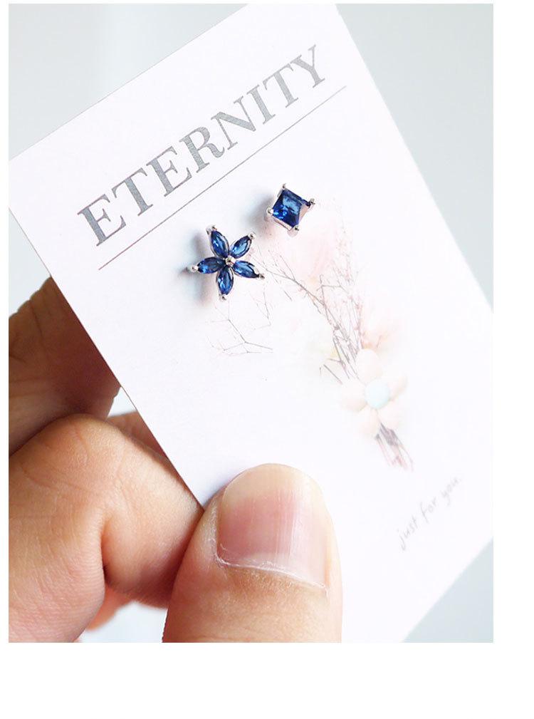 Pair of blue squares, Pair of small blue flowers, One blue square flower each