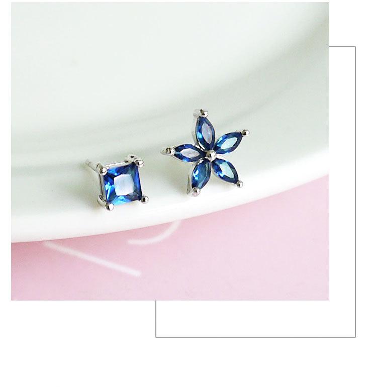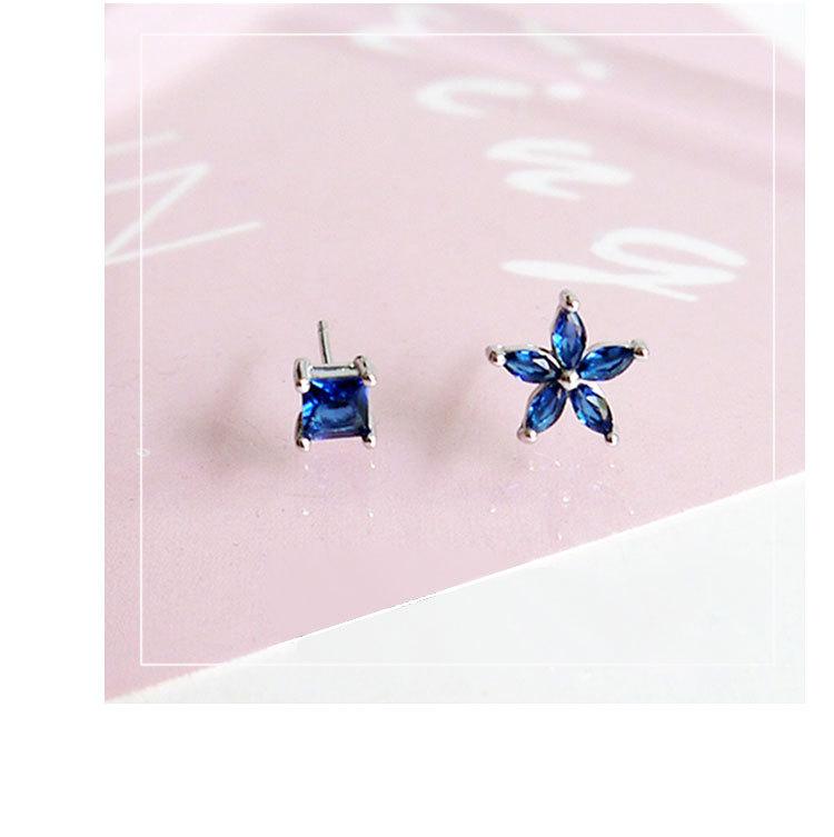 Pendientes asimétricos de plata de ley 925 con forma de flor cuadrada para mujer, estilo francés, estilo nicho, de alta calidad.